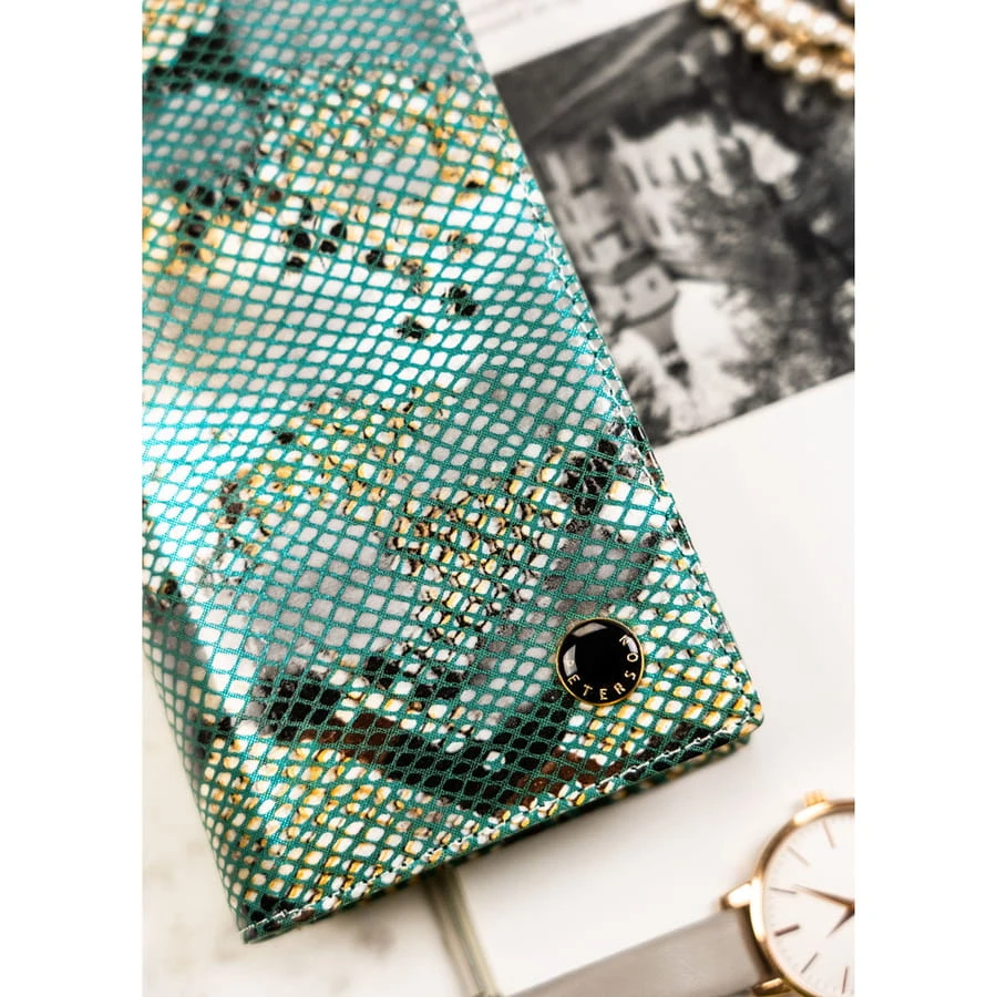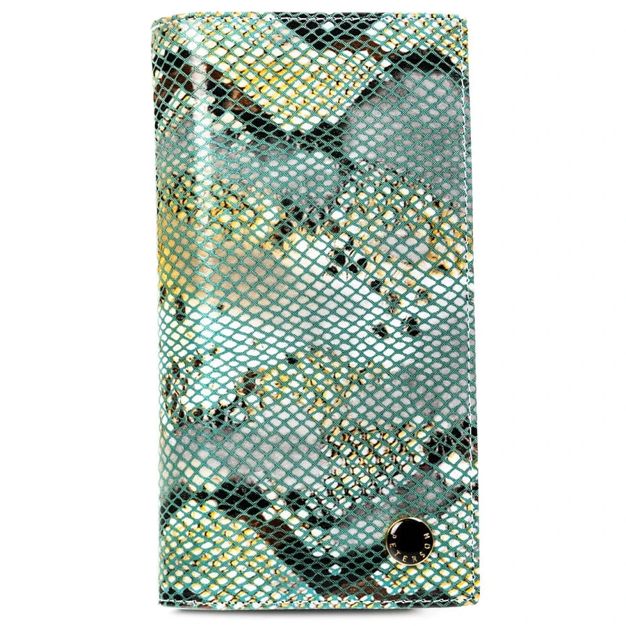 Skórzany, pionowy portfel damski na magnes z fakturą imitującą skórę węża - Peterson
