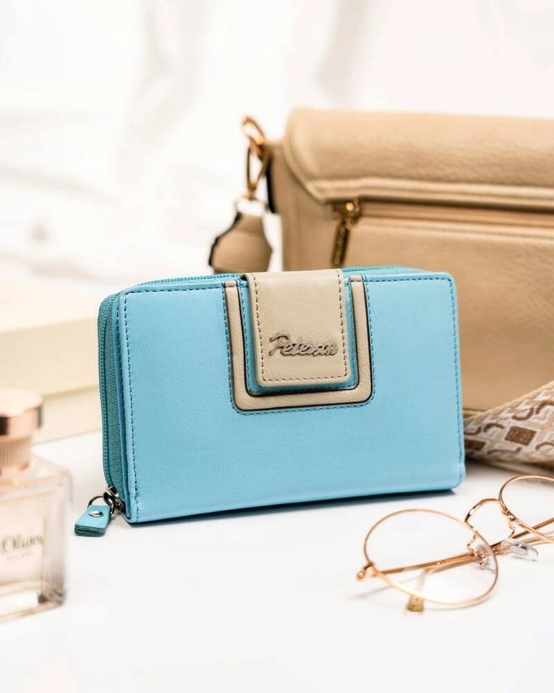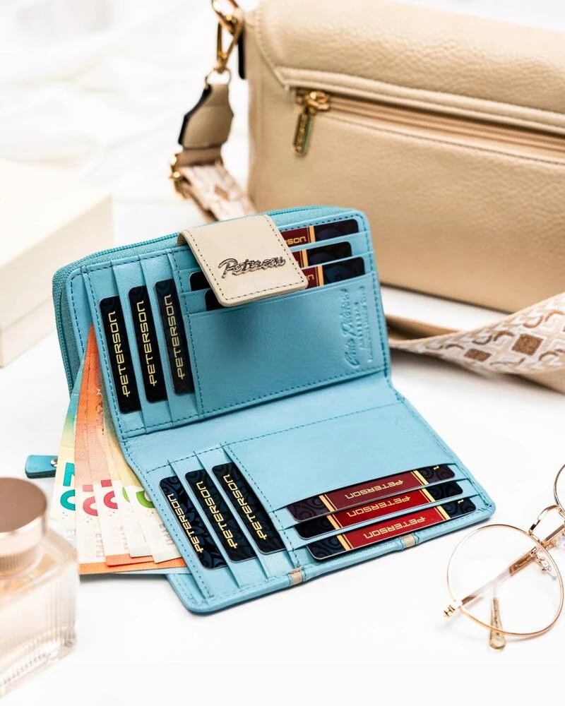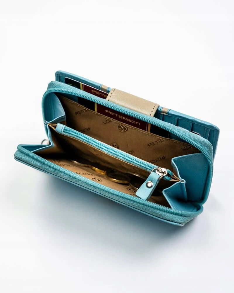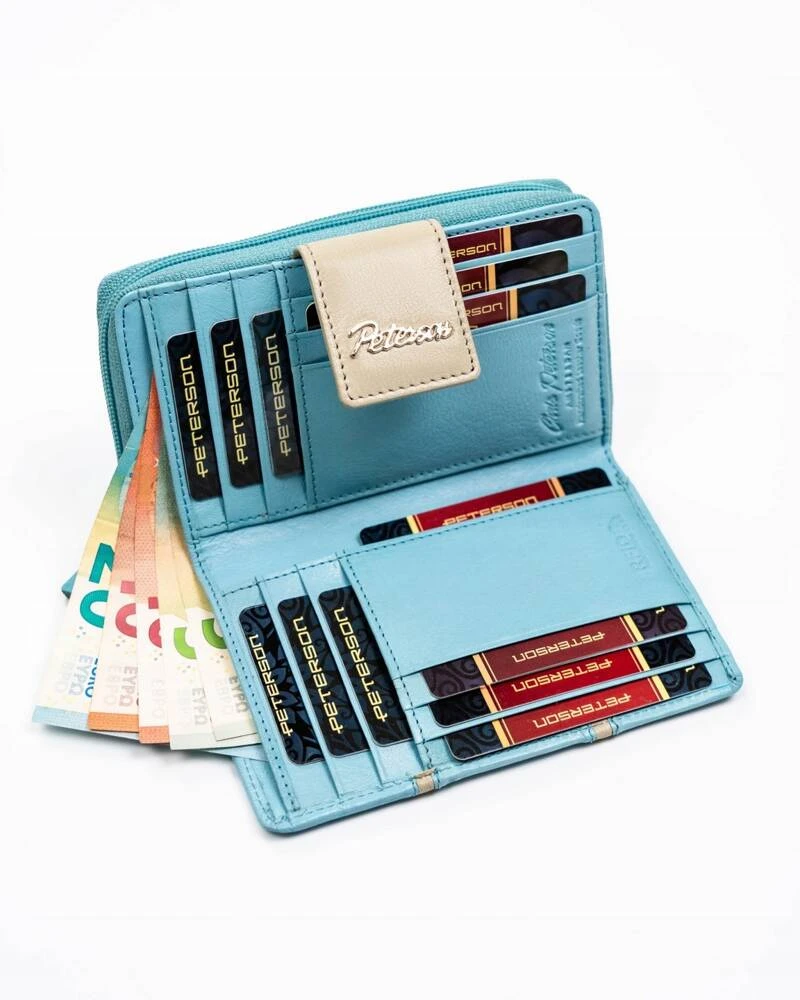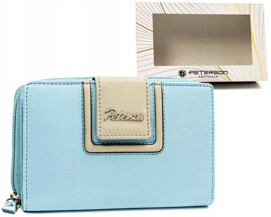Skórzany portfel damski na zatrzask i suwak - Peterson