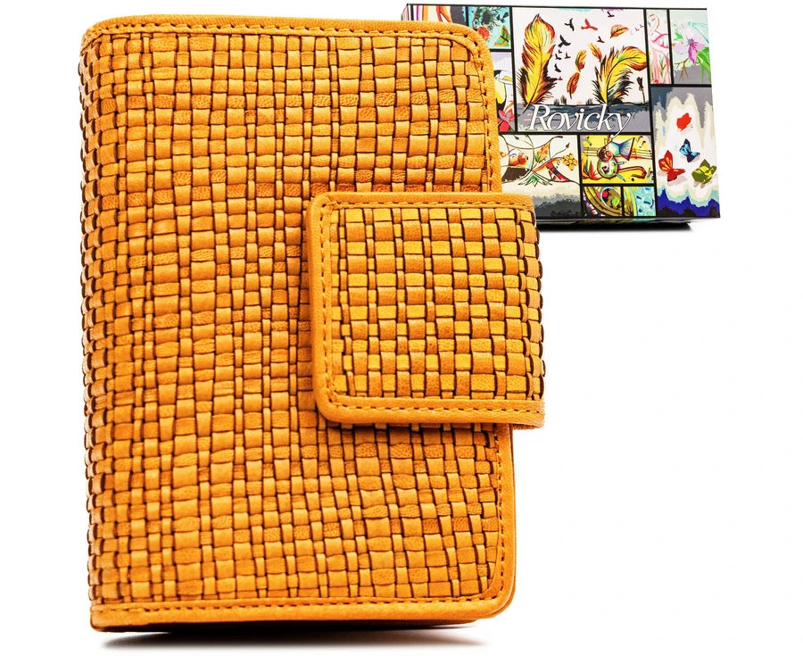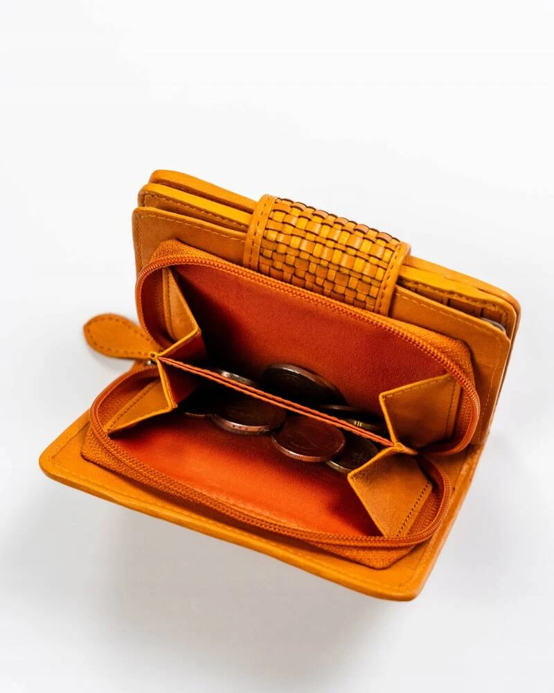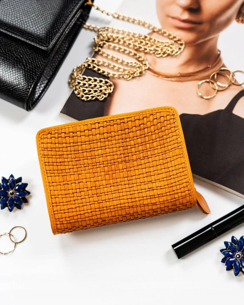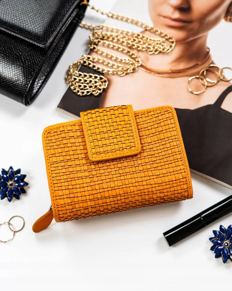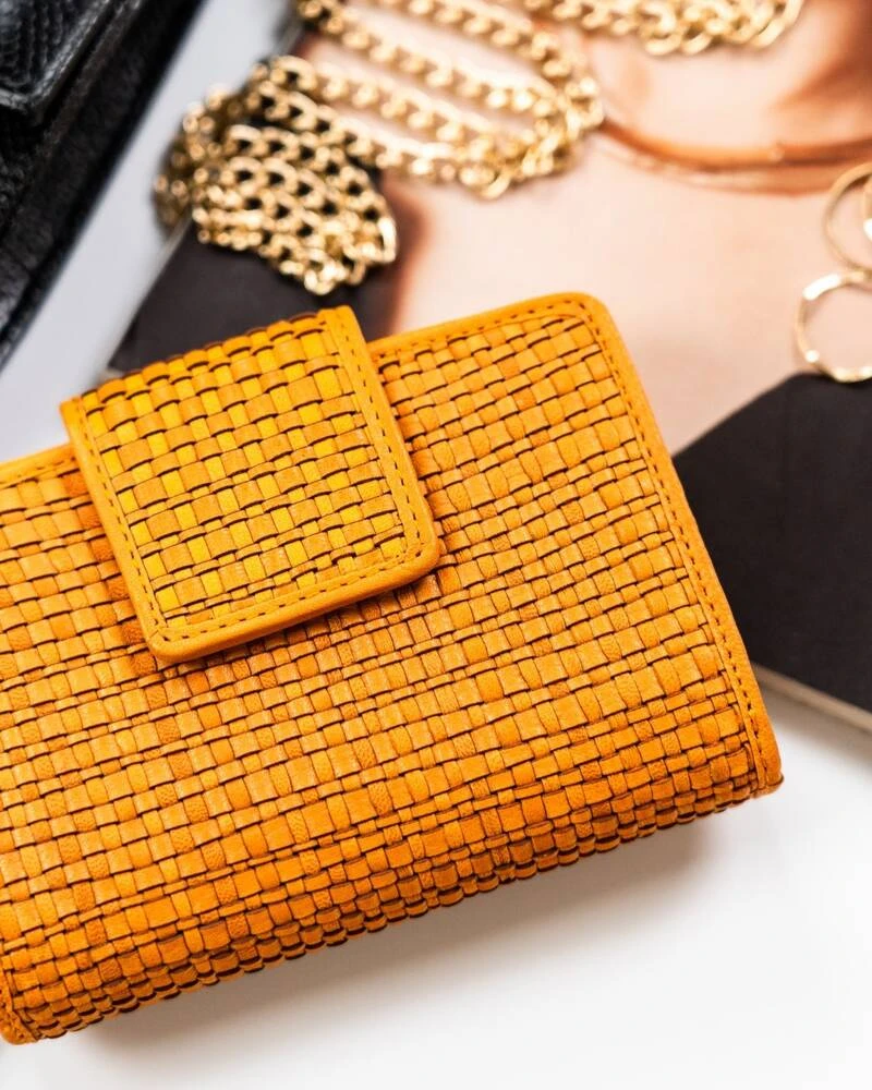 Skórzany portfel damski zamykany na zatrzask - żółty
