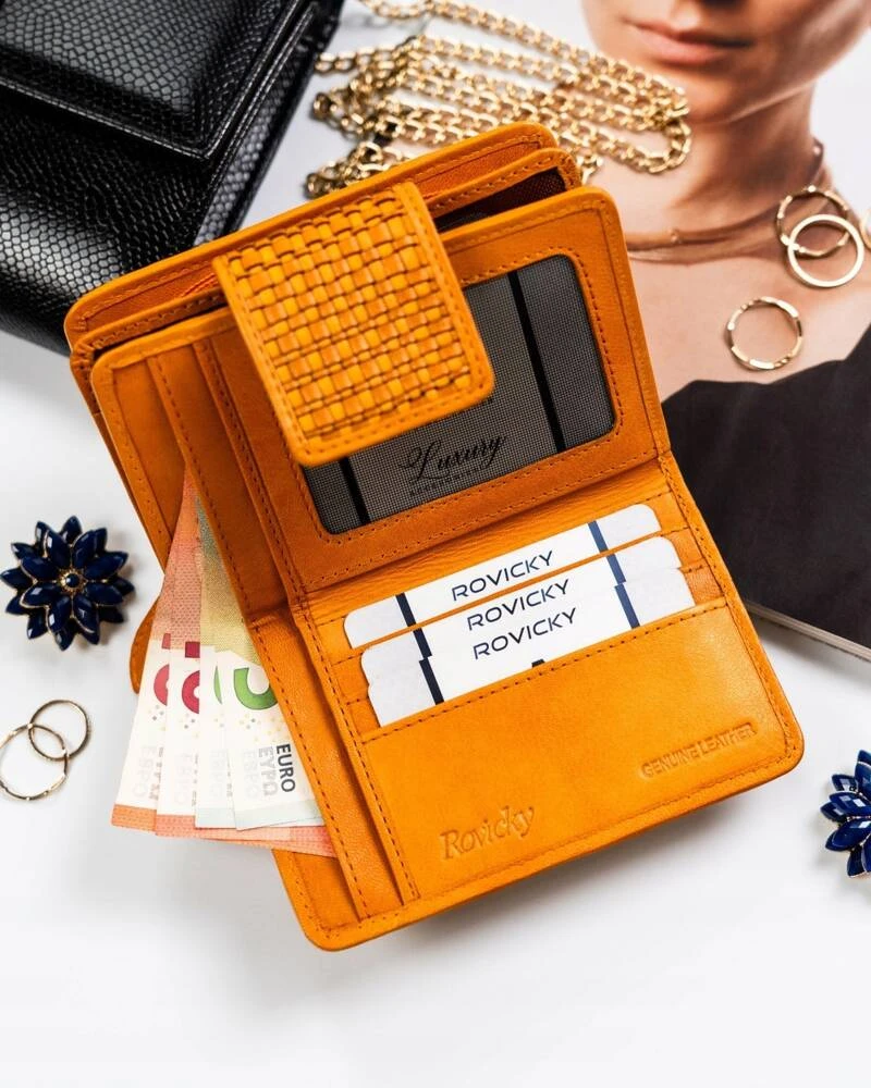 Portfel o średnich wymiarach z rozbudowanym wnętrzem.