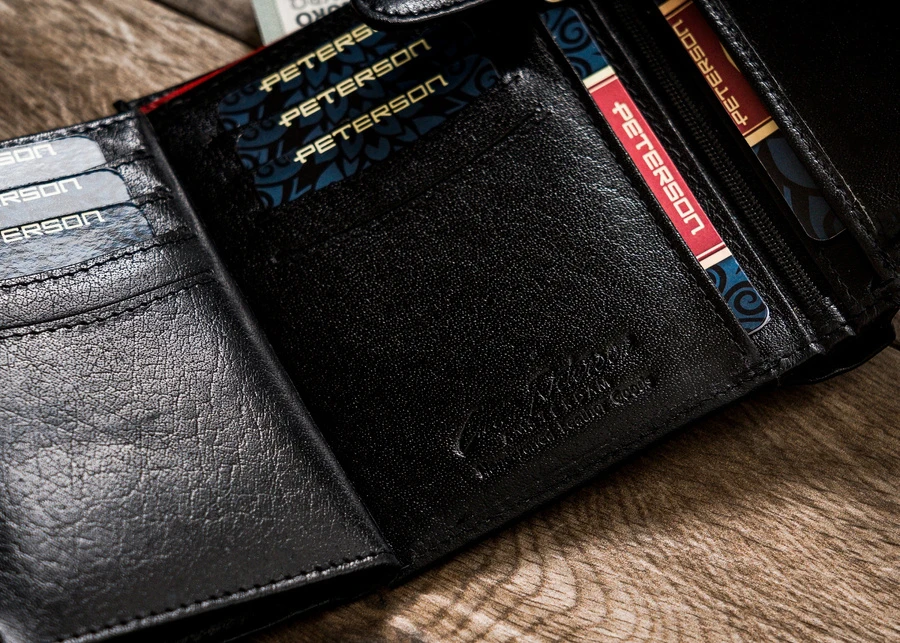 - banknoty schowasz do 2 otwartych, szerokich przegródek, wykończonych materiałową podszewką.