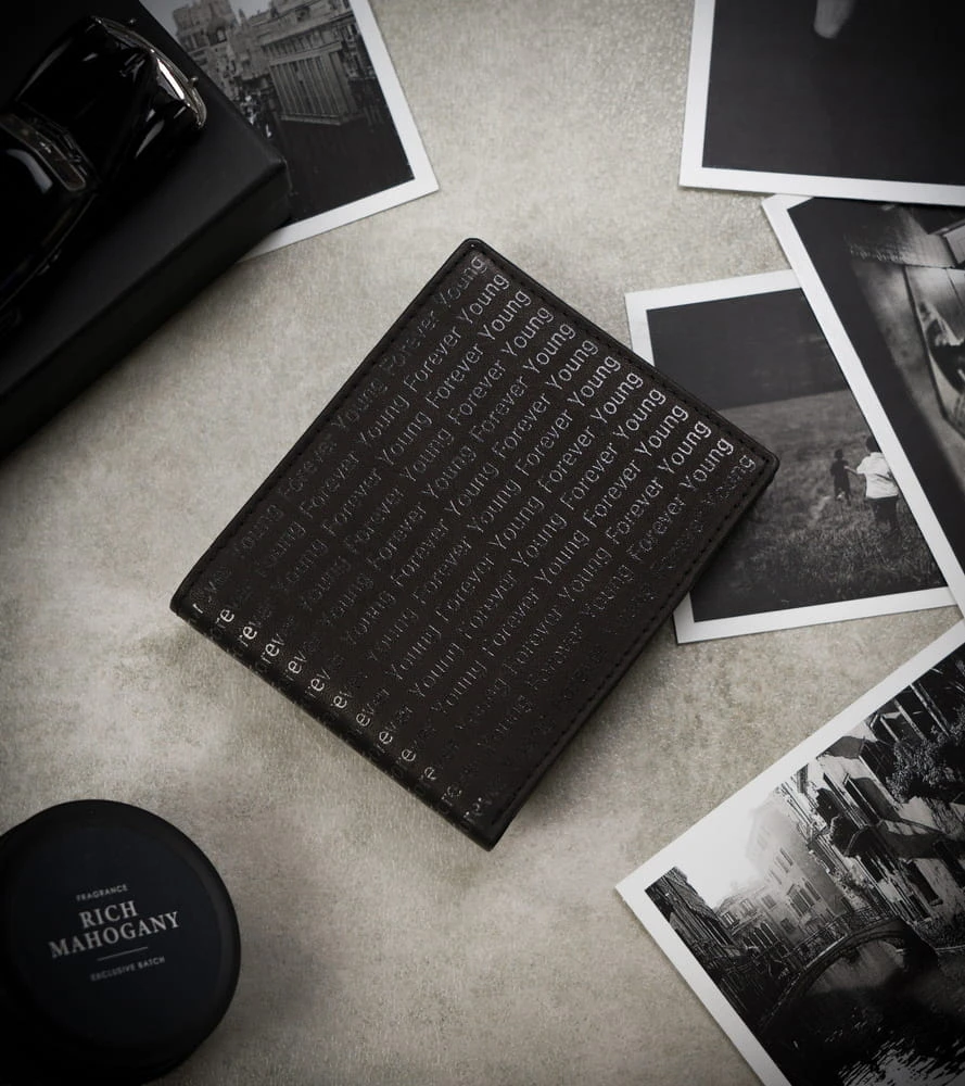Skórzany portfel zdobiony monogramem - Forever Young Forever Young – portfel męski skórzany RFID poziomy pionowy | niua.pl