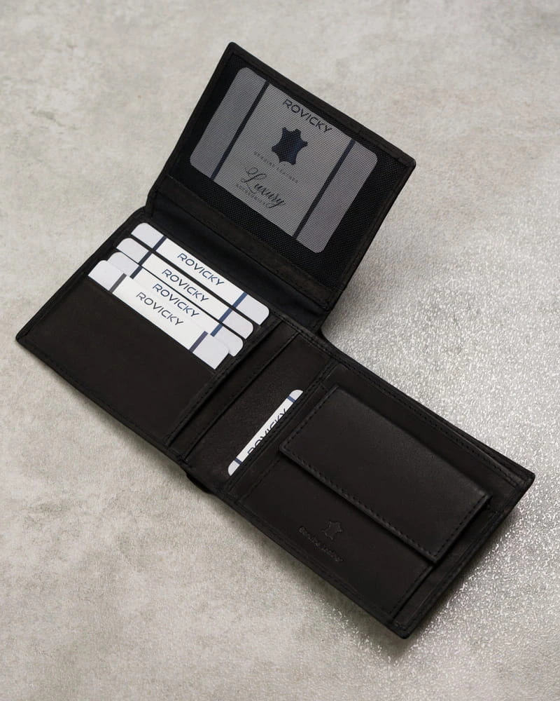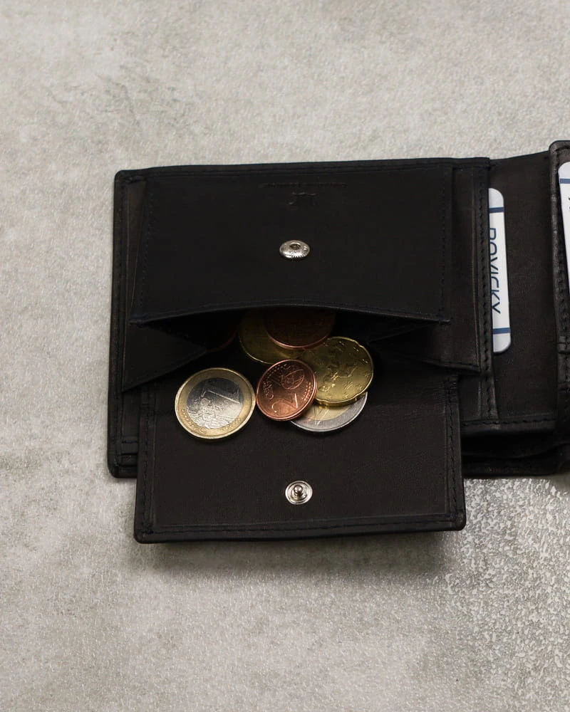Środek portfela został zaprojektowany tak, abyś mógł zmieścić wszystkie karty, dokumenty i pieniądze, które na co dzień potrzebujesz.