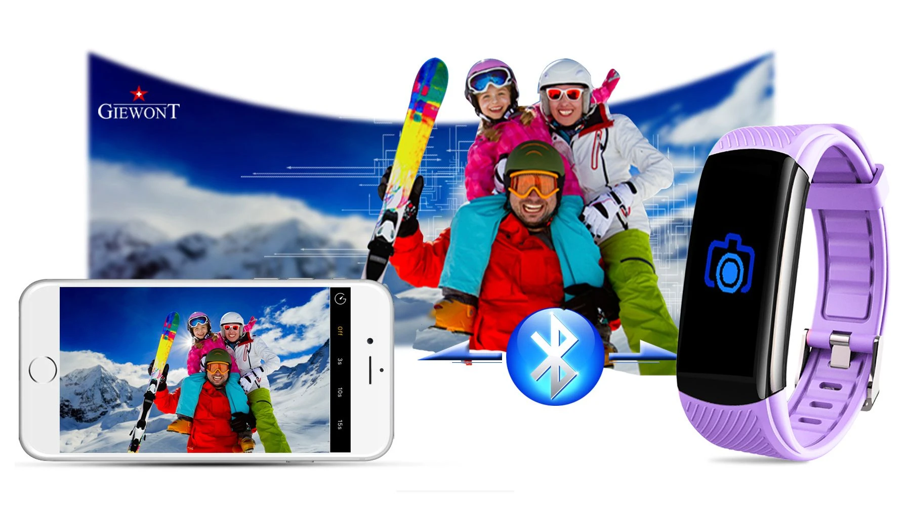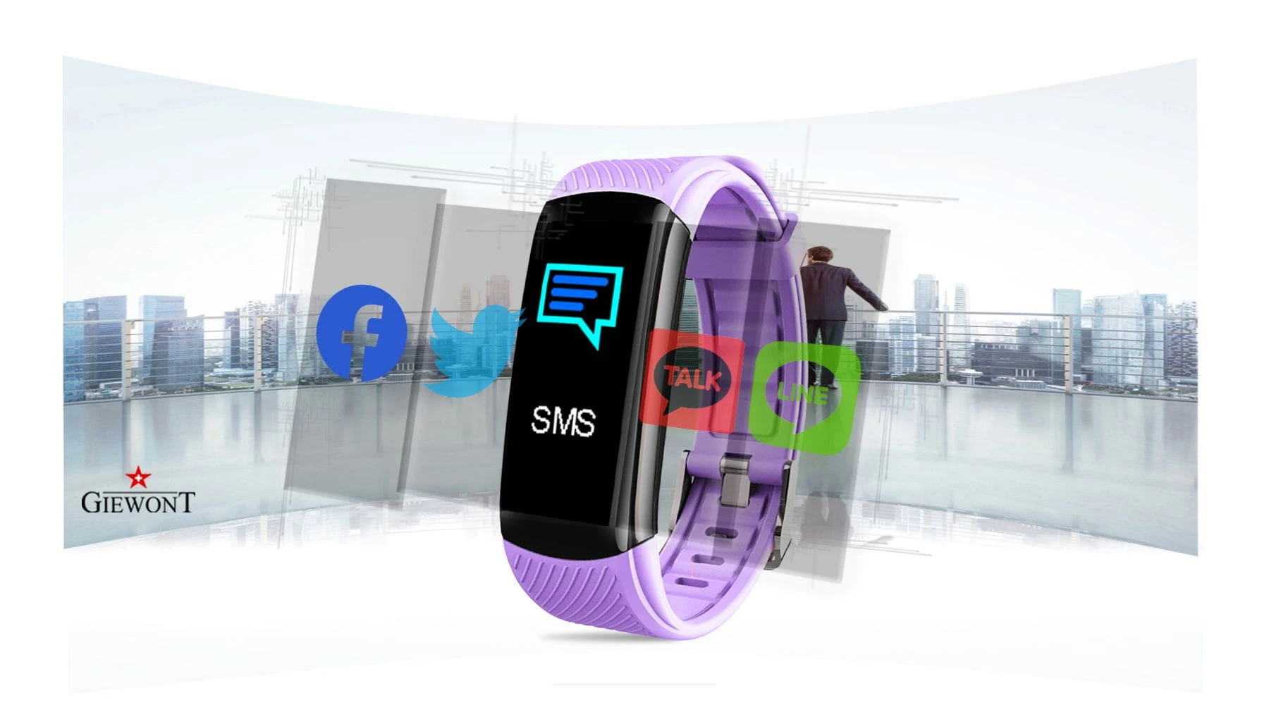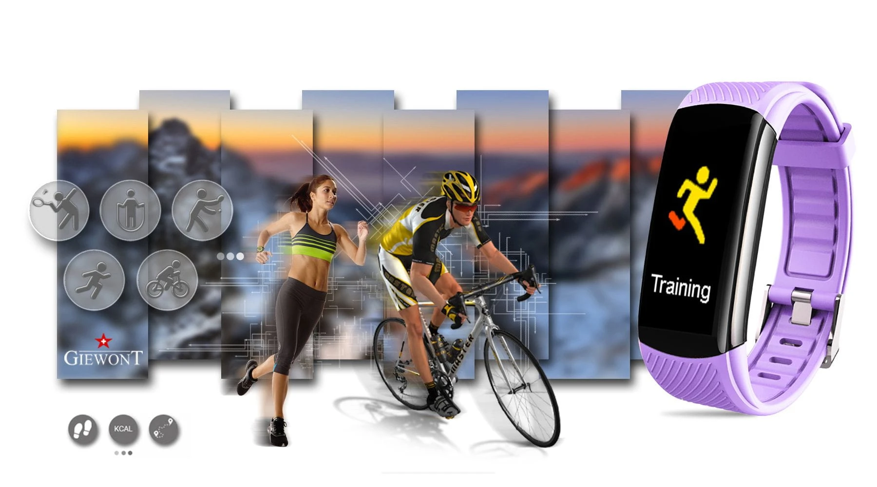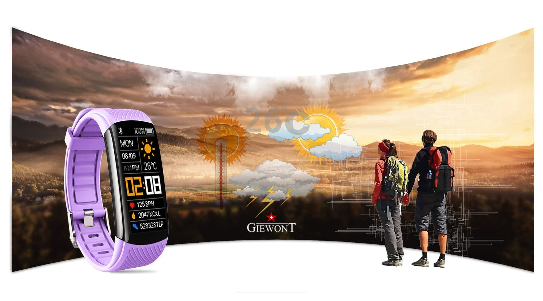 Smartband Giewont Fit&GO Duo GW200 – opaska sportowa, tętno, IP67, Bluetooth, czarny + lawendowy pasek – zegarek męski Giewont granatowy | niua.pl