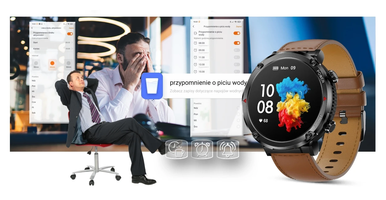 Smartwatch idealny dla aktywnych osób, którzy czas wolny spędzają na uprawianiu sportu i dbanie o zdrowy tryb życia. Ten model posiada wiele różnych trybów sportowych: koszykówka, rower, bieganie, chodzenie, skakanie, piłka nożna i badminton, które pozwolą w łatwy sposób kontrolować trening lub zabawę sportową. Pozwoli ci zaplanować i kontrolować czas, dystans, spalanie kalorii i efekt treningu.
