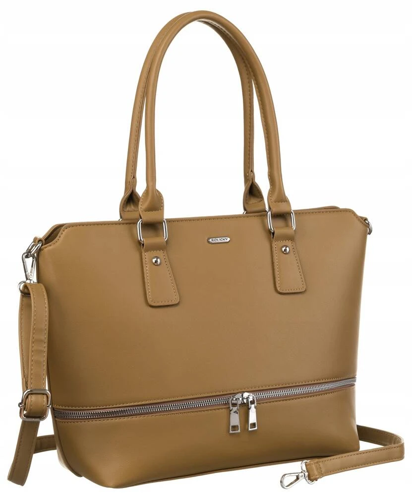 Stylowa shopperka damska ze skóry ekologicznej z odpinanym paskiem - Rovicky