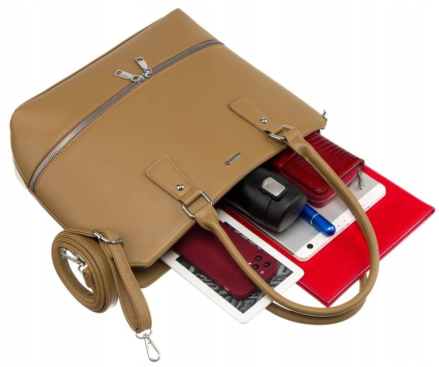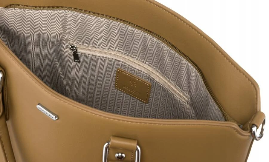 Stylowa beżowa shopperka damska ze skóry ekologicznej z odpinanym paskiem - Rovicky