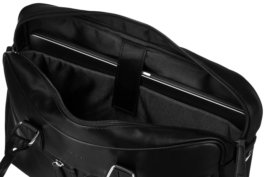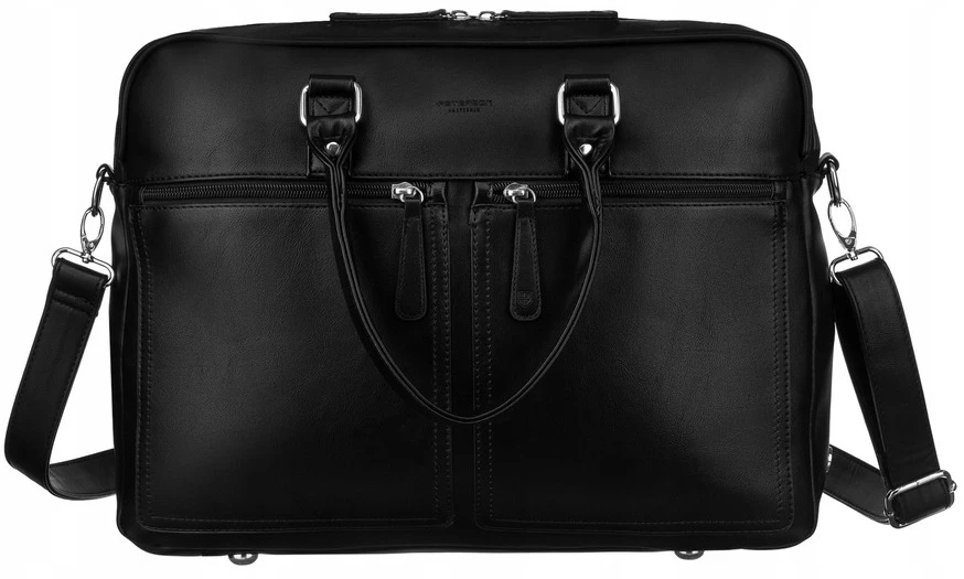 Torba na laptopa do 14 cali Peterson czarna ze skóry ekologicznej – uchwyt i pasek regulowany