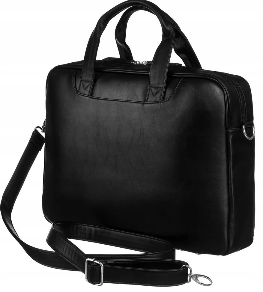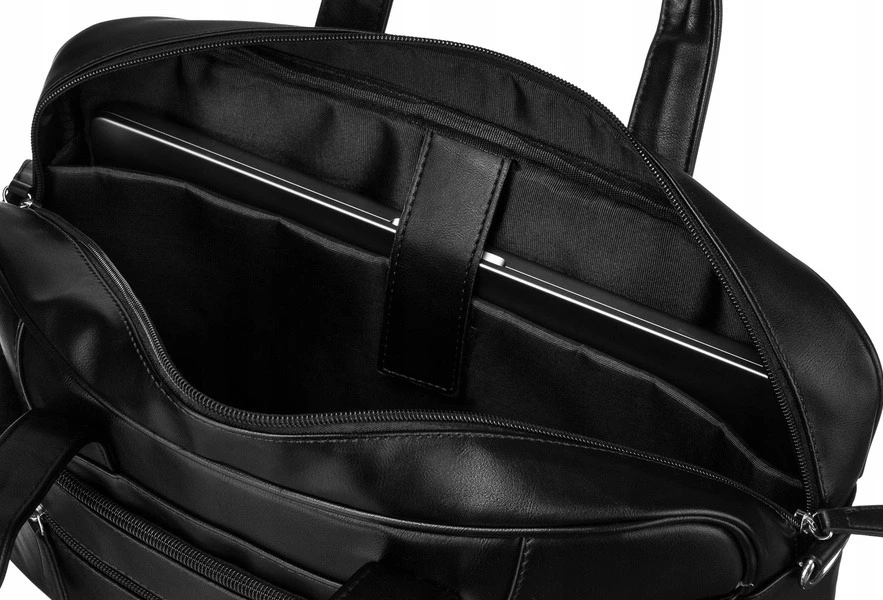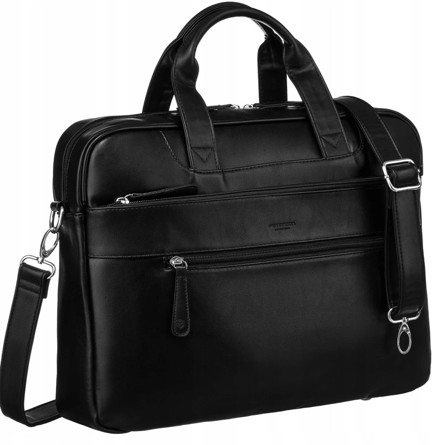 Torba na laptopa do 14 cali Peterson czarna ze skóry ekologicznej z regulowanym paskiem i uchwytami