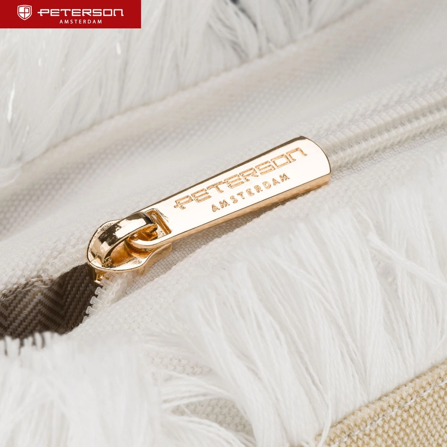 Torba plażowa damska Peterson duża biało-beżowa – shopper bag na suwak, pojemna torba letnia