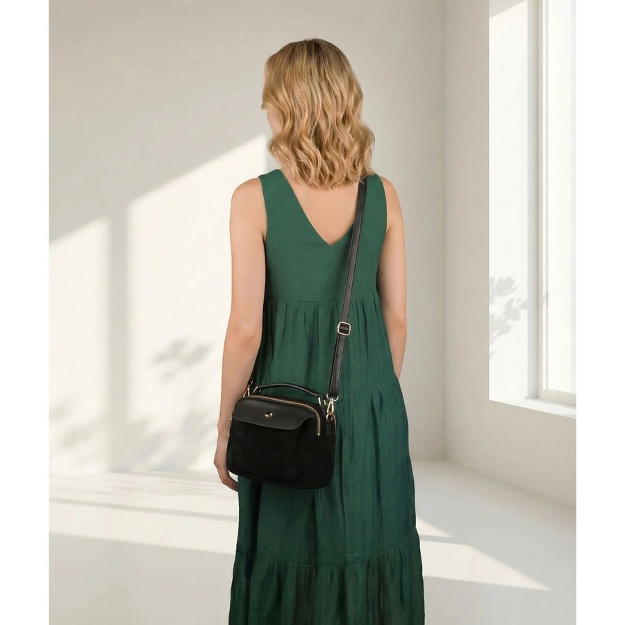 Mała torebka damska Peterson to idealne połączenie elegancji i funkcjonalności. Dzięki dwóm komorom i aż 6 kieszeniom zapewnia świetną organizację, a klasyczny czarny kolor sprawia, że pasuje do każdej stylizacji.