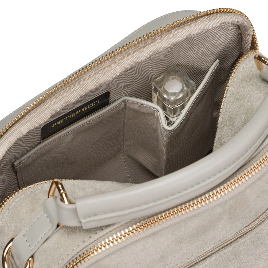Modna torebka damska Peterson w kolorze szarym to idealne połączenie stylu i funkcjonalności. Dzięki dwóm komorom i aż 6 kieszeniom zapewnia świetną organizację, a uniwersalny kolor sprawia, że pasuje do każdej stylizacji.