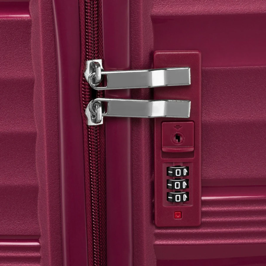 Walizka została wykonana z polipropylenu, który zapewnia wysoką odporność na uszkodzenia oraz niską wagę.