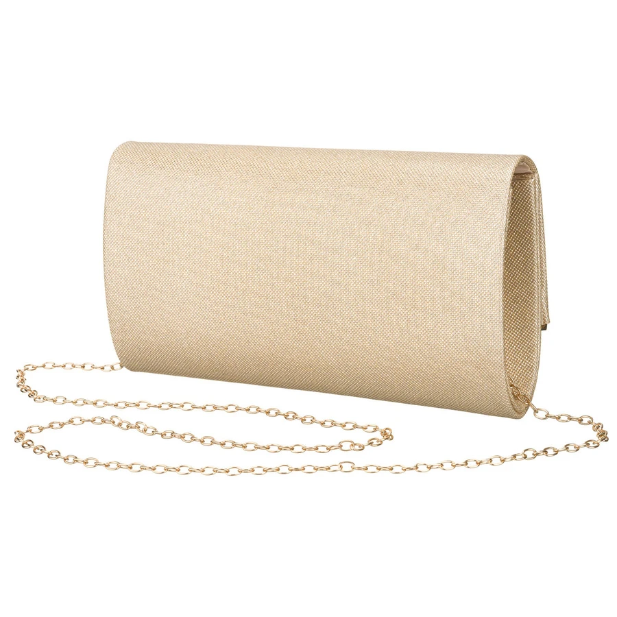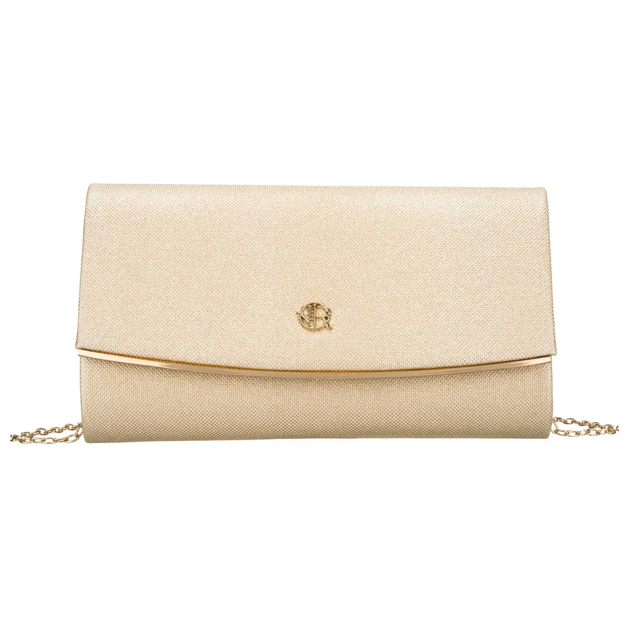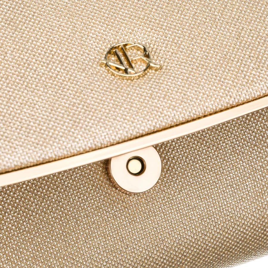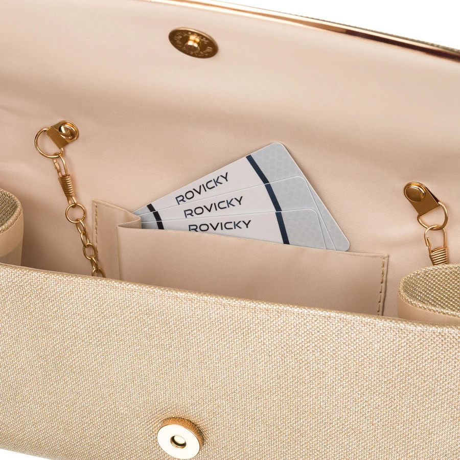 Wizytowa, złota torebka damska wykonana z tkaniny syntetycznej zamykana klipsem magnetycznym - Rovicky