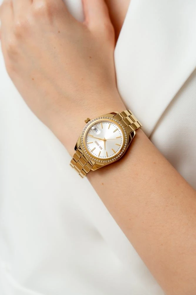 - Indeksy/Wskazówki/Sekundnik: kolor złoty