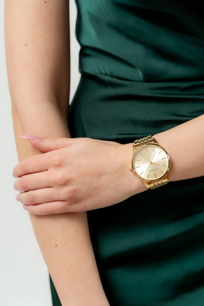 - Indeksy/Wskazówki/Sekundnik: kolor złoty