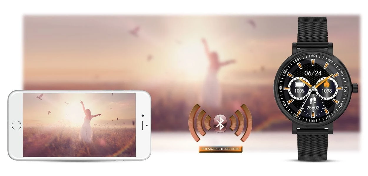 Dzięki połączeniu zegarka z telefonem komórkowym za pomocą bluetooth możesz bezprzewodowo obsługiwać swoją playlistę na telefonie z pozycji zegarka.