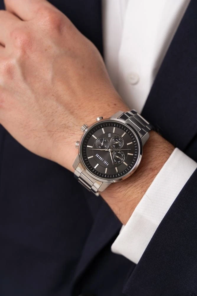 Chronografy w tym zegarku to prawdziwe mistrzostwo, które zadowoli każdego mężczyznę, który ceni sobie precyzyjny pomiar czasu. Intuicyjna obsługa oraz doskonała czytelność sprawiają, że korzystanie z chronografów to prawdziwa przyjemność. Eleganckie wskazania czasu 24h, podwójnego czasu DUAL TIME, oraz dni tygodnia tworzą harmonijną kompozycję, dodając każdej męskiej dłoni niepowtarzalnego szyku. Dodatkowo zegarek wyposażony jest w datownik dni miesiąca. Przemyślane funkcje tego modelu sprawiają, że zegarek staje się nieocenionym towarzyszem w codziennym życiu, idealnie wpisując się w styl mężczyzny, który ceni sobie porządek i precyzję.