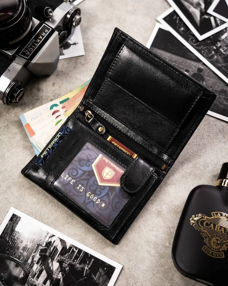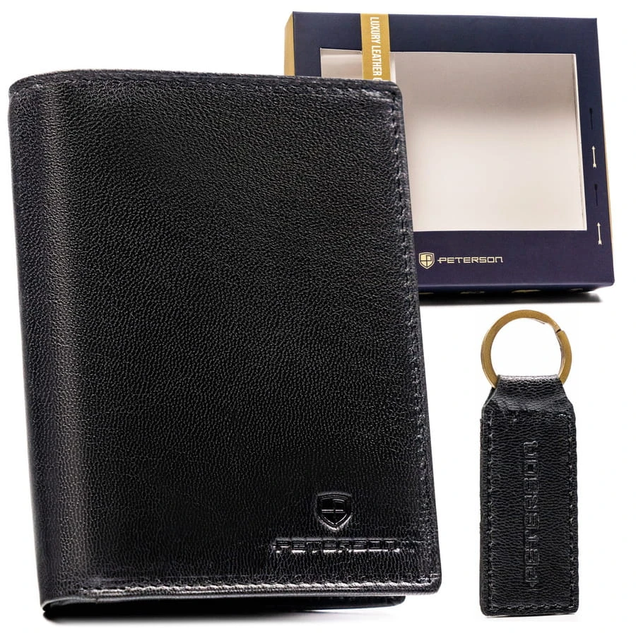 Zestaw prezentowy: elegancki, skórzany portfel męski i brelok — Peterson