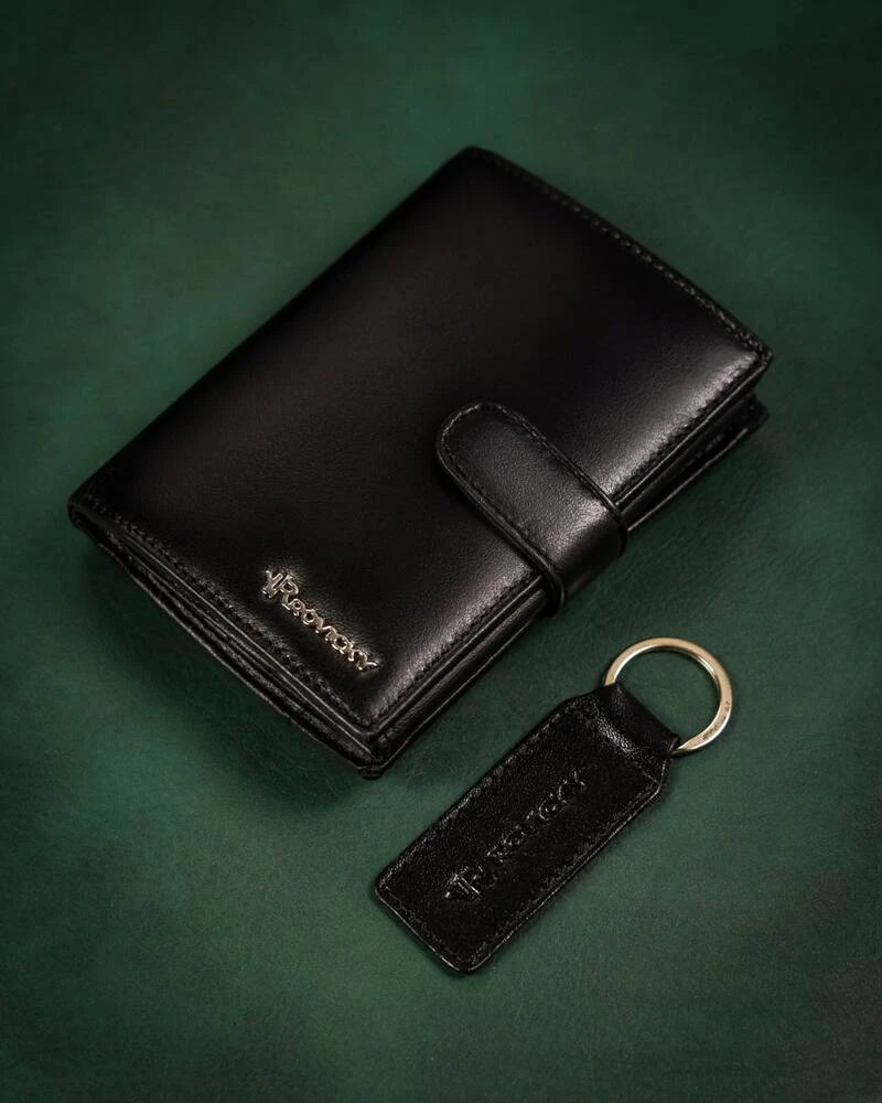 Zestaw prezentowy: elegancki, skórzany portfel męski i brelok — Rovicky