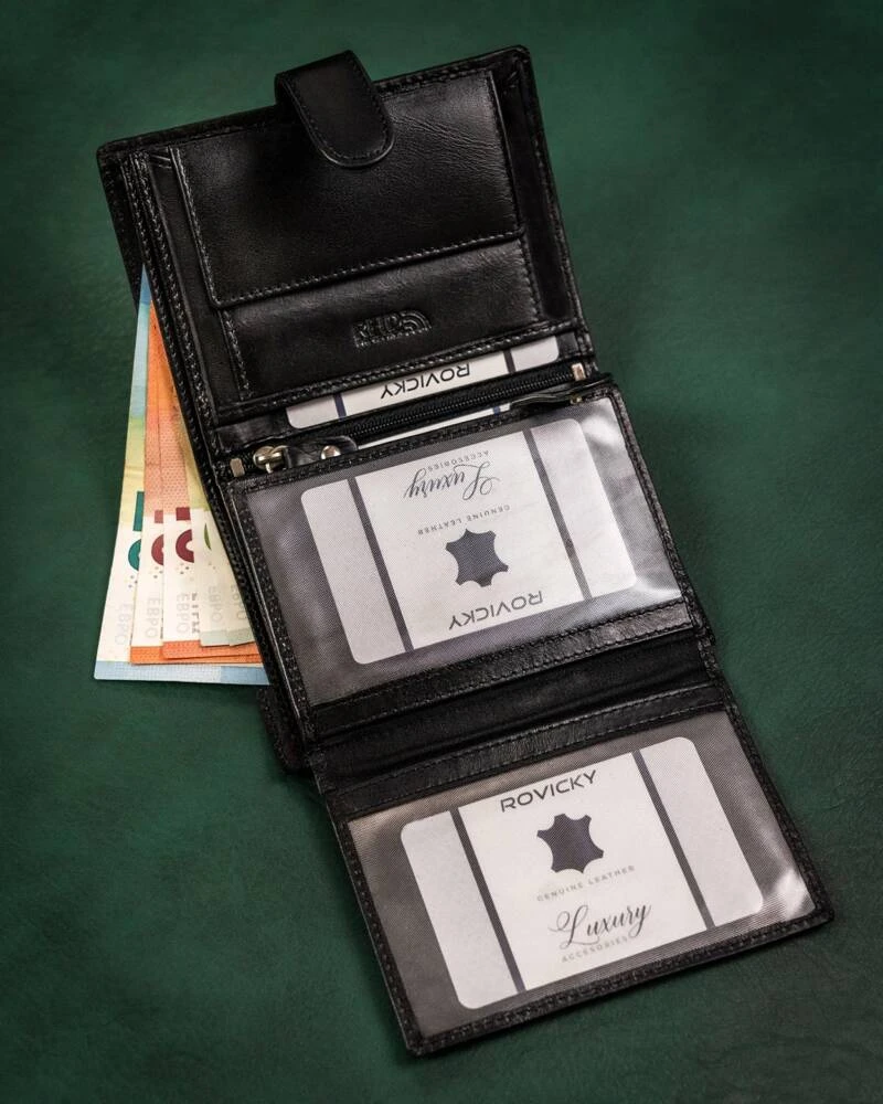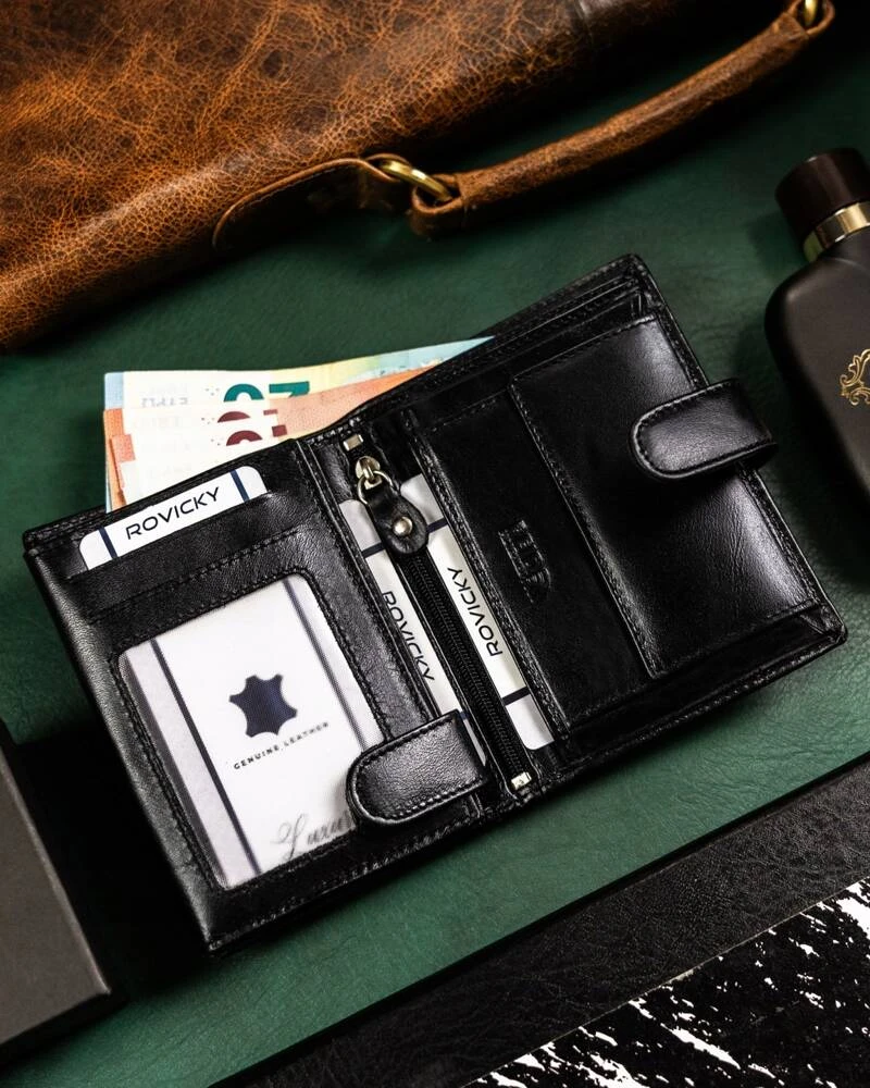 Zestaw prezentowy: elegancki, skórzany portfel męski i brelok - Rovicky