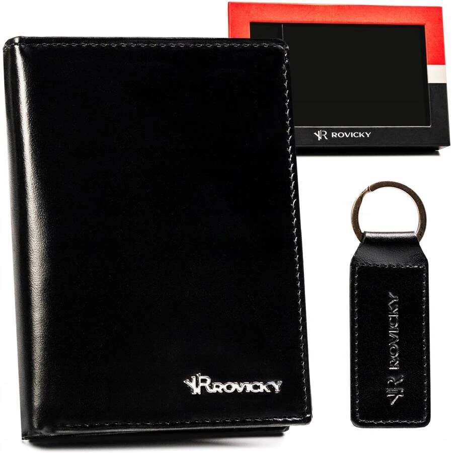 Zestaw prezentowy: elegancki, skórzany portfel męski i brelok - Rovicky