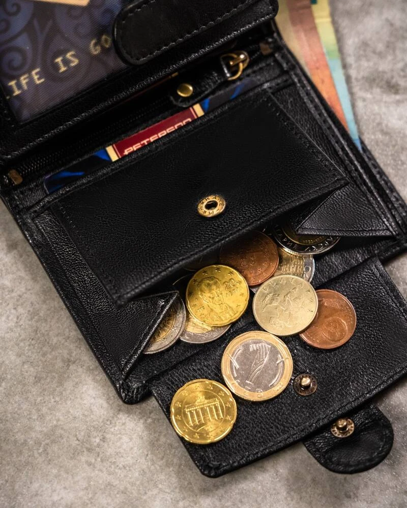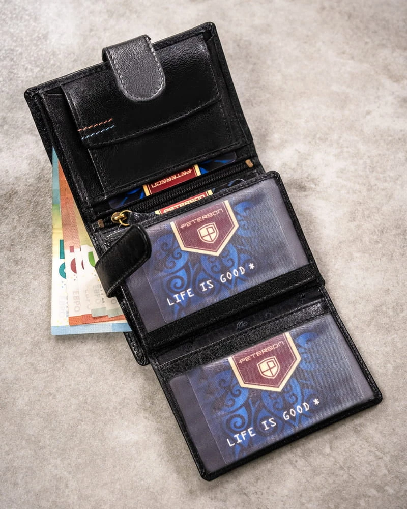 Portfel jest bardzo pojemny również w kwestii gotówki. Kieszenie na pieniądze, podobnie jak przegródki na karty także wyściełane są odporną na otarcia podszewką.