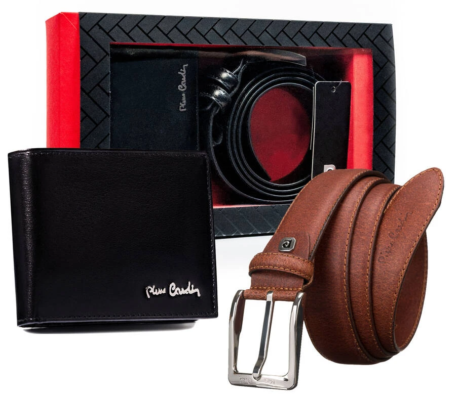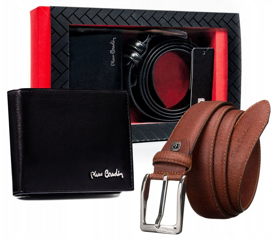 Zestaw prezentowy: skórzany portfel i pasek męski - Pierre Cardin
