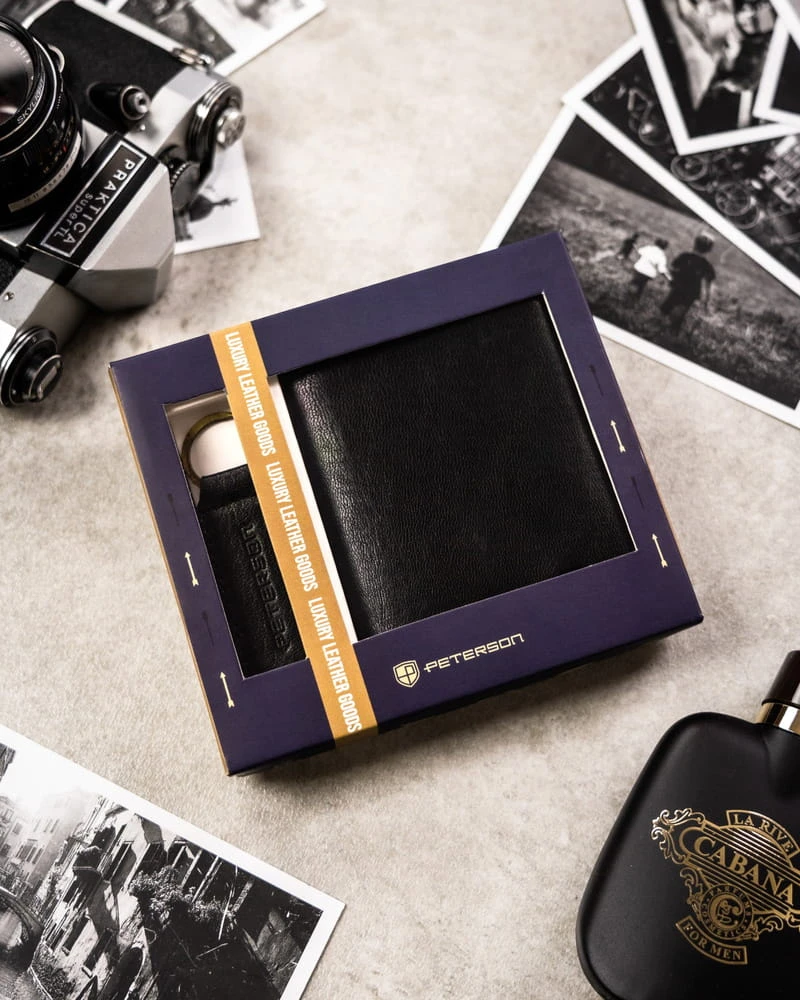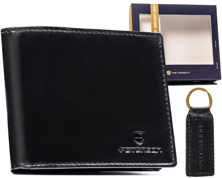 Zestaw prezentowy: skórzany portfel męski i brelok — Peterson