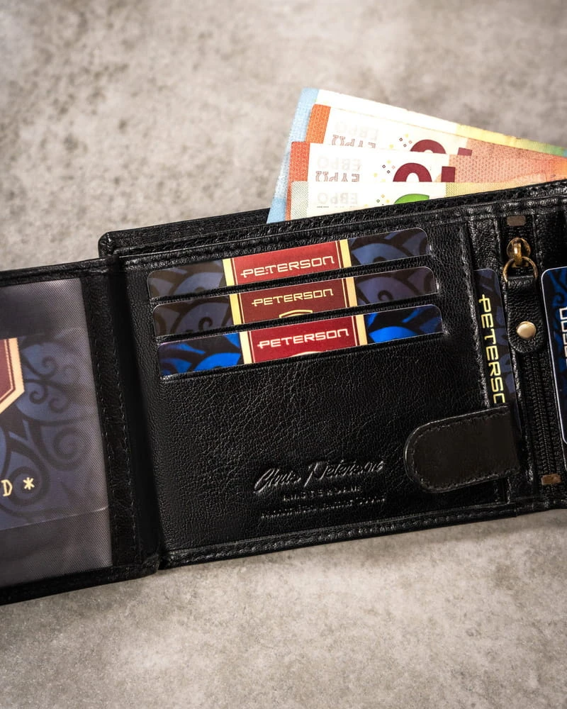 - 1 schowek na suwak w centralnej części portfela.