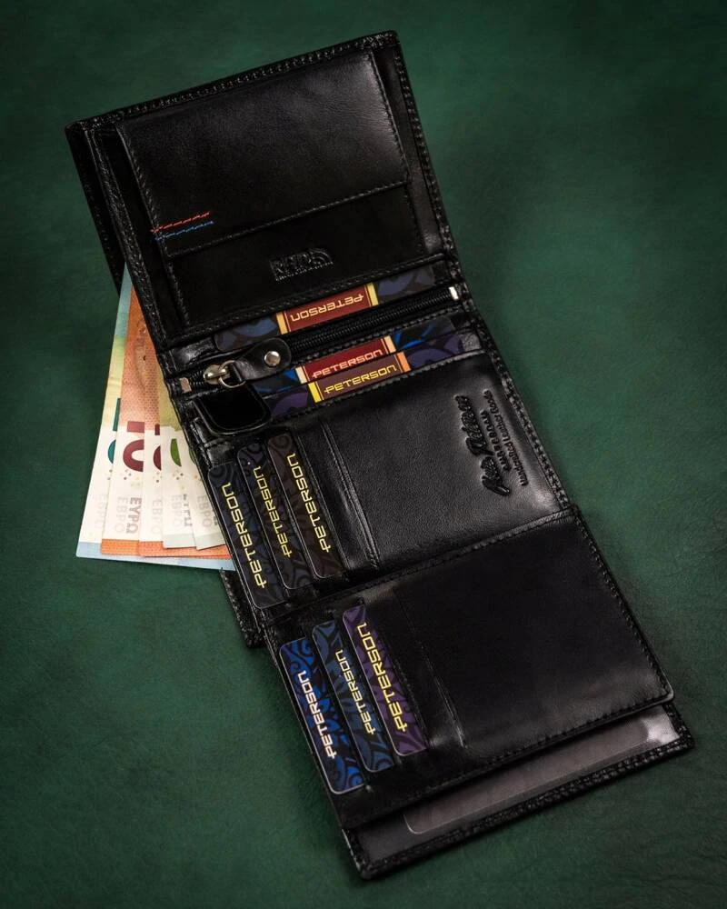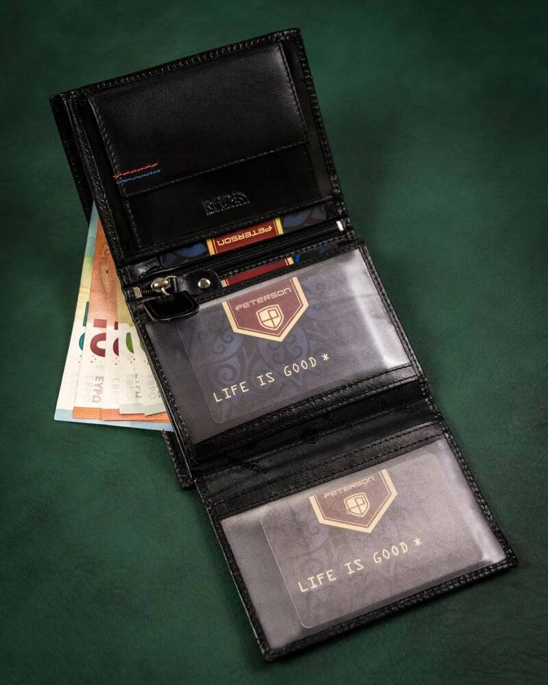 Portfel jest niezwykle funkcjonalny. Wnętrze zostało zaprojektowane tak, abyś mógł pomieścić w nim wszystkie najważniejsze rzeczy. Intuicyjne rozlokowanie przegródek i kieszonek zapewni komfort użytkowania.