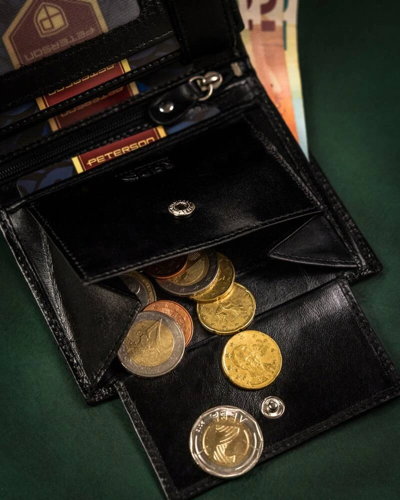 W portfelu jest 1 kieszeń, w której schowasz bilon. Kieszeń jest dosyć pojemna i zapinana na suwak.