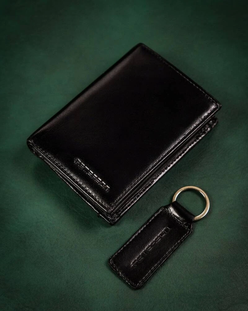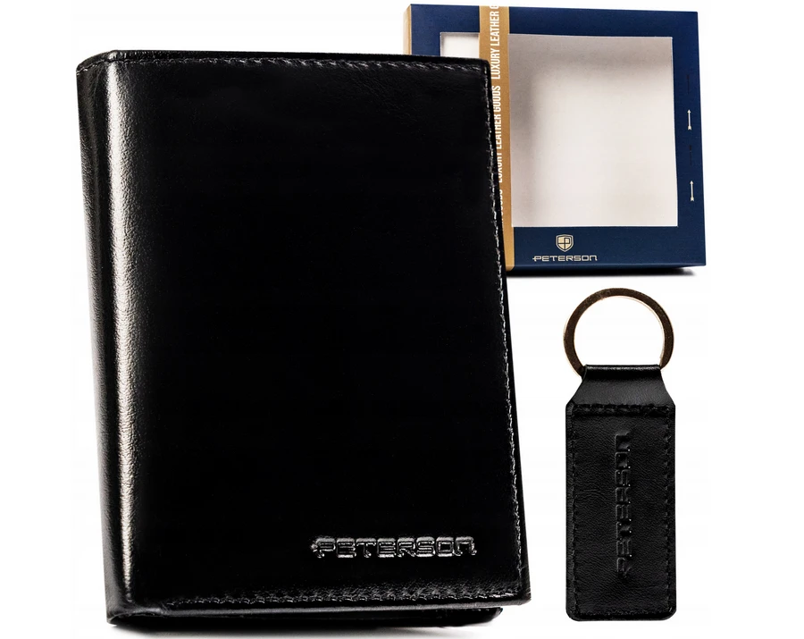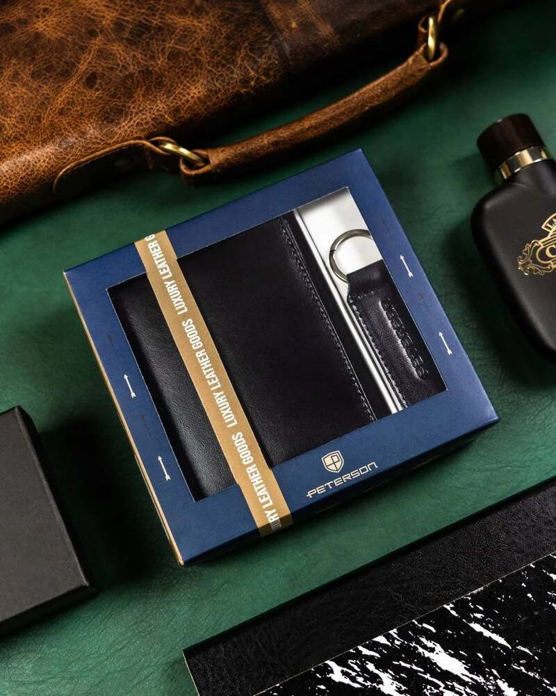 Zestaw prezentowy: skórzany portfel męski i brelok — Peterson