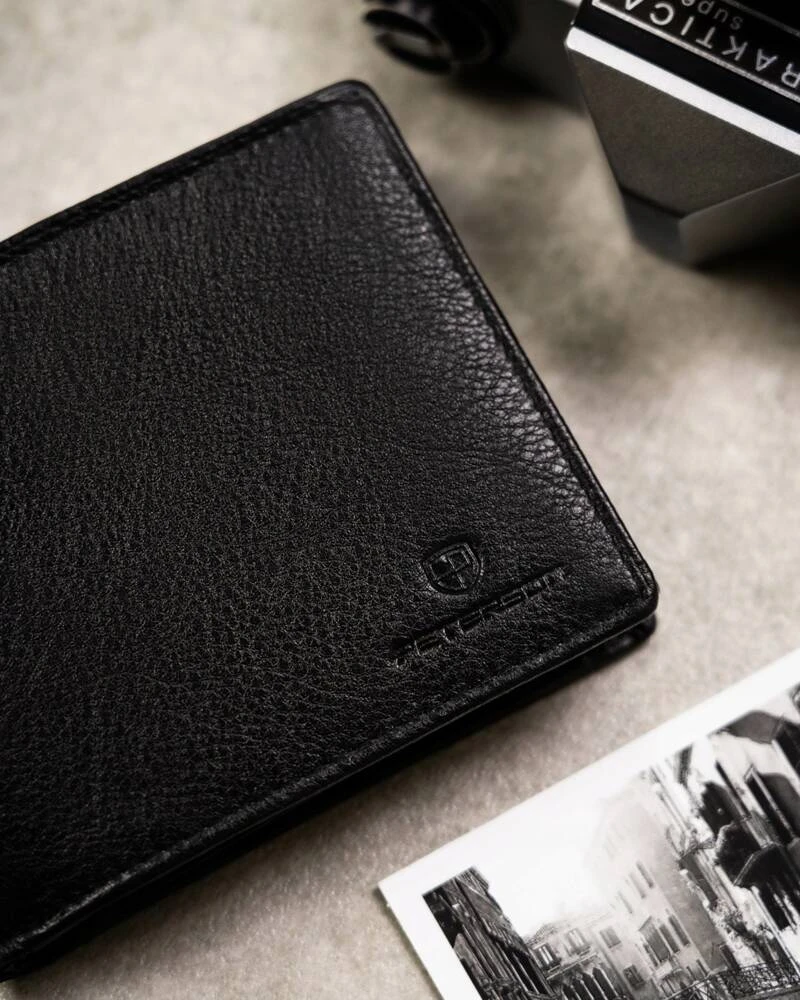 Portfel jest bardzo pojemny również w kwestii Twojej gotówki. Kieszenie na pieniądze, podobnie jak przegródki na karty także wyściełane są odporną na otarcia podszewką.