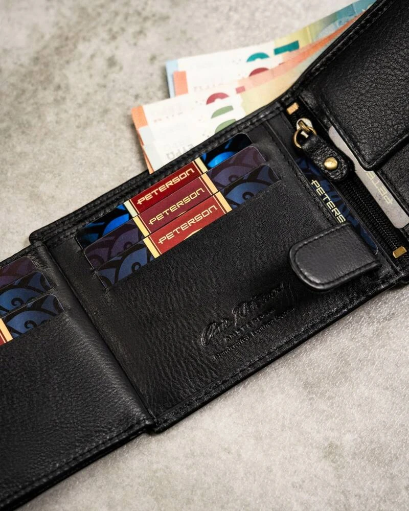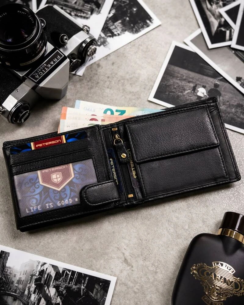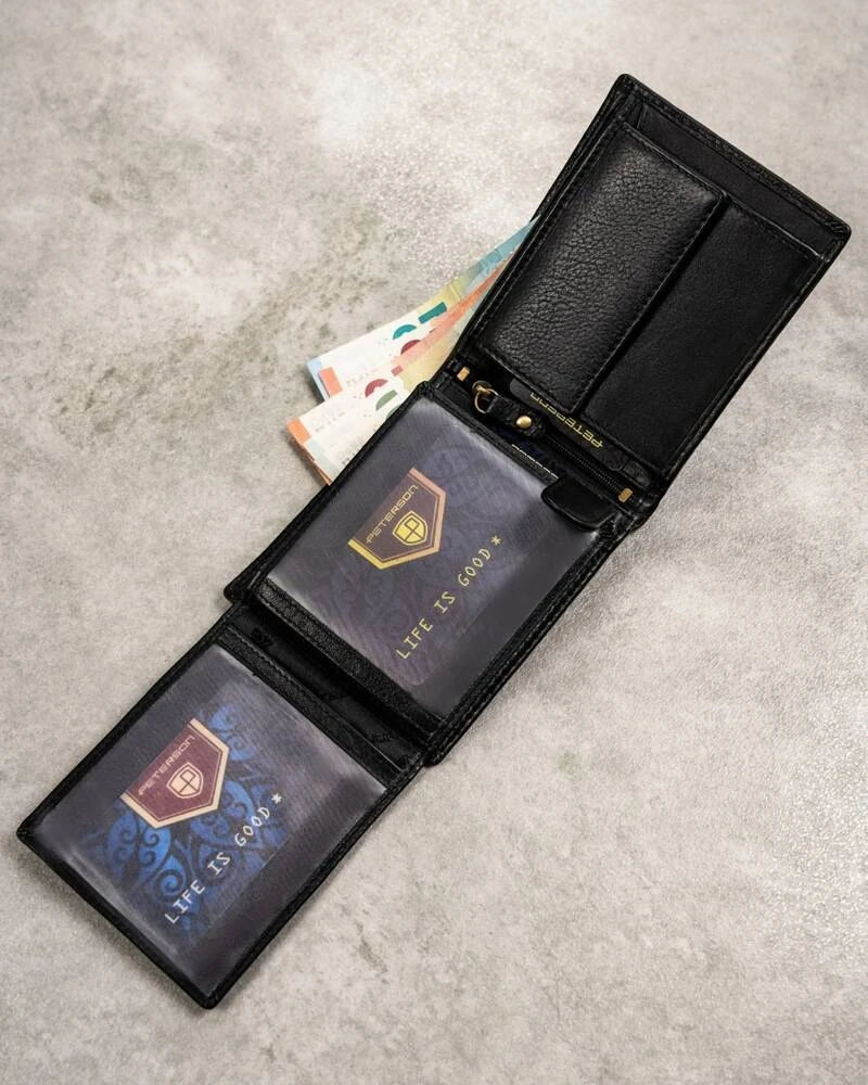 - na banknoty wydzielone są 2 przegródki. Taka ilość kieszeni umożliwia Ci segregację banknotów, jeśli np. korzystasz nie tylko z jednej waluty.