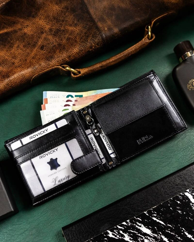 Zestaw prezentowy: skórzany portfel męski i brelok - Rovicky