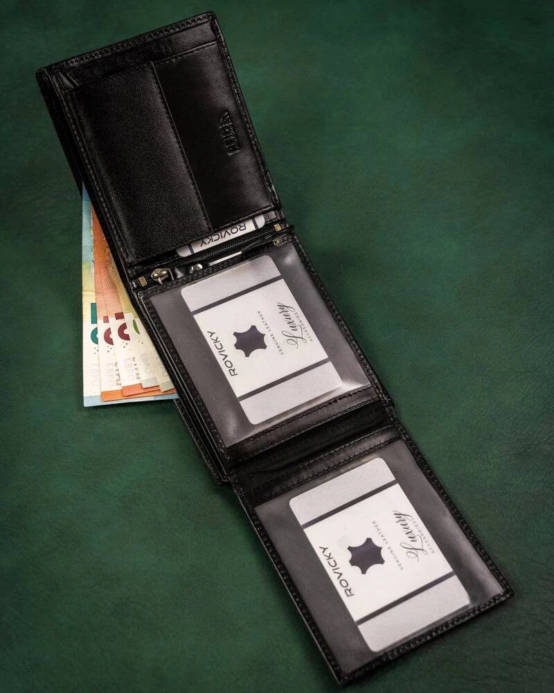 - Funkcjonalność i pojemny | Bez problemu mieści karty i dokumenty, które wszyscy posiadamy, jak dowód osobisty czy prawo jazdy, ale też dokumenty o większym formacie. Dowód rejestracyjny w okładce z wydziału komunikacji też znajdzie tu swoje miejsce, nie mówiąc już o gotówce - z łatwością zmieścisz tu wiele monet i banknotów;