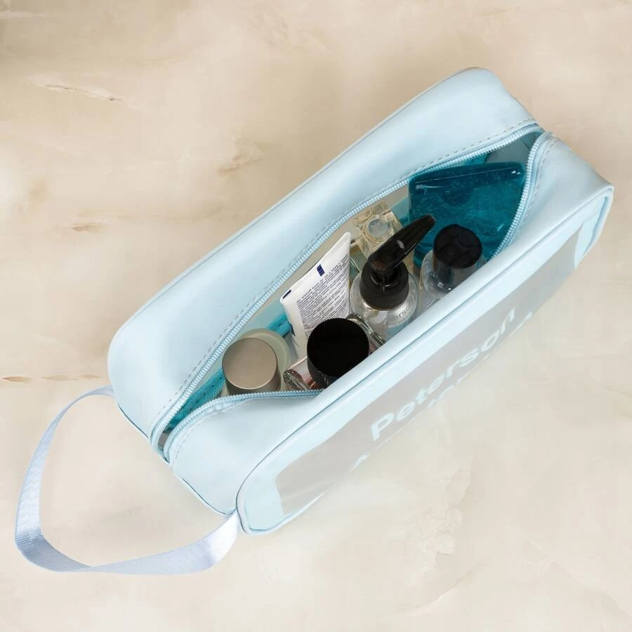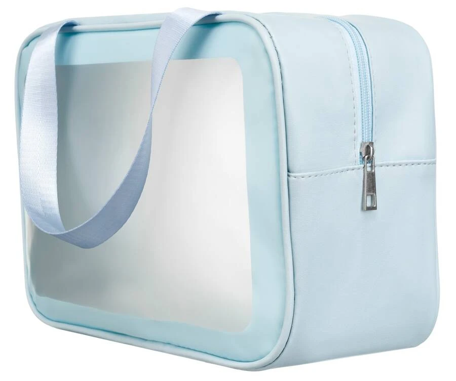 Przedni oraz tylny panel jest półprzezroczysty, dzięki czemu zawsze będziesz w stanie ocenić, co znajduje się w środku bez konieczności otwierania kosmetyczki.