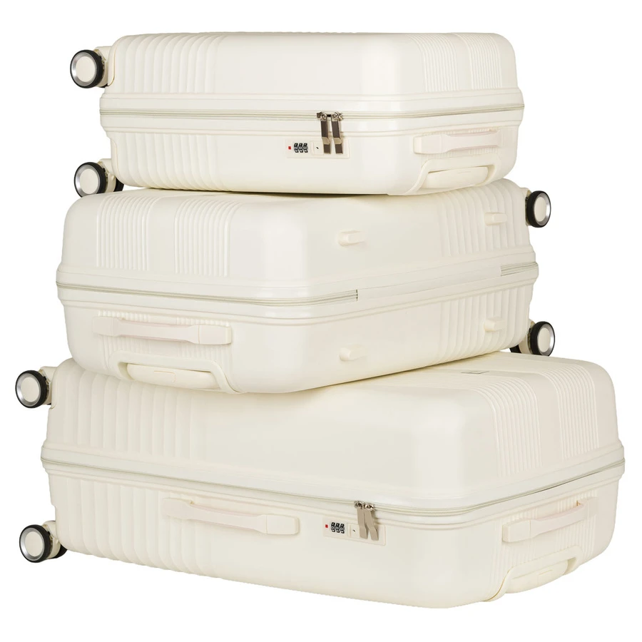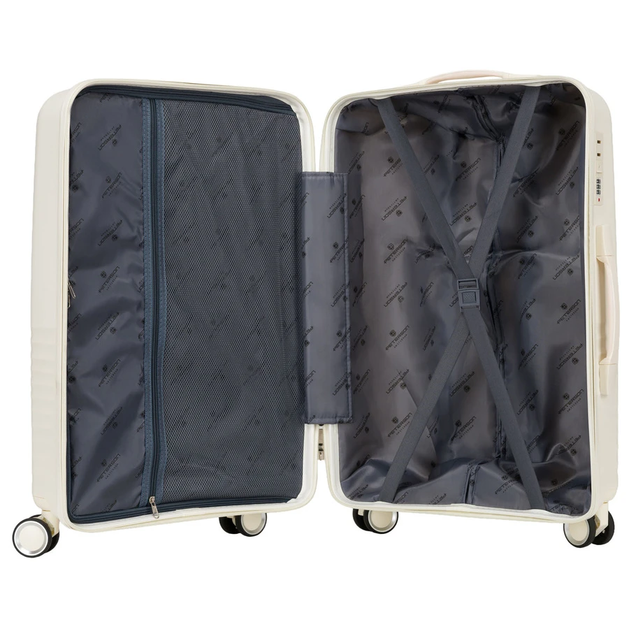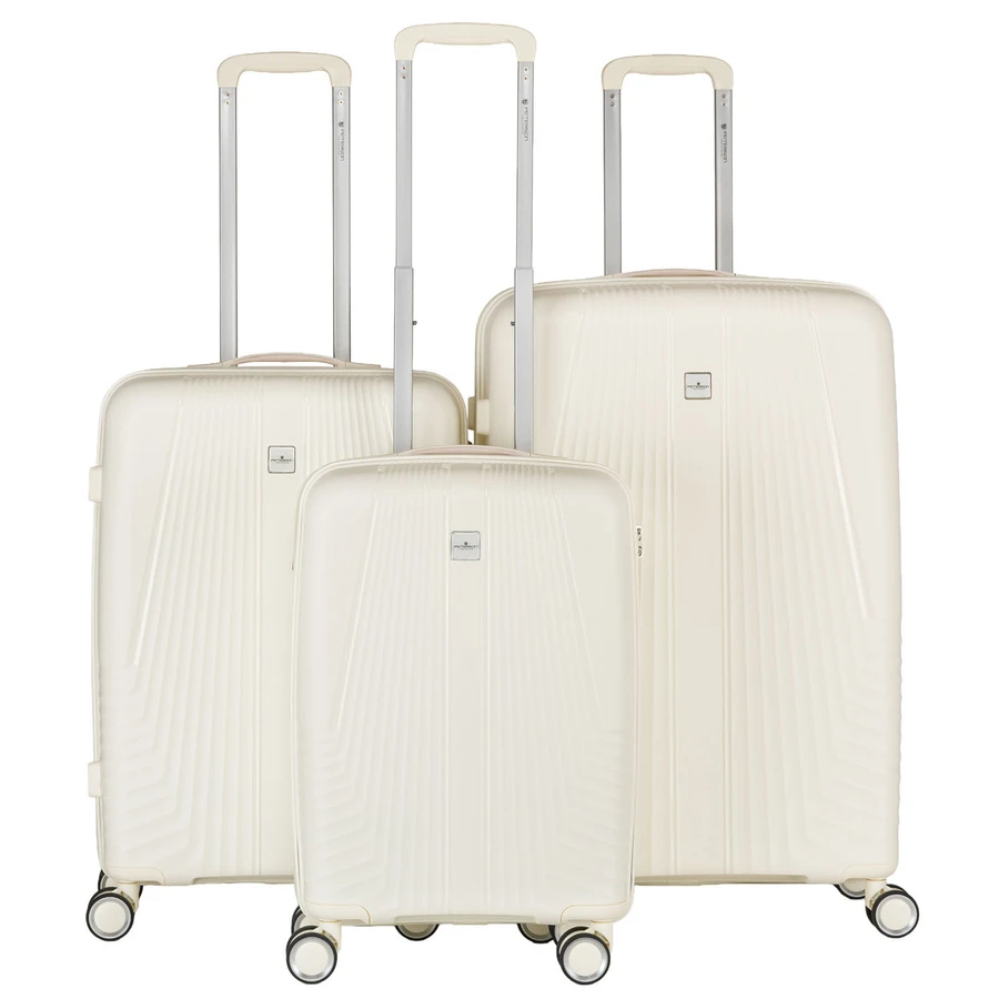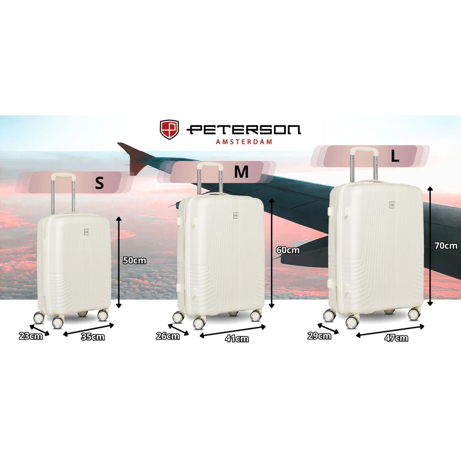 Zestaw walizek Peterson ABS (3 sztuki) w eleganckim beżowym kolorze to idealny wybór na każdą podróż. Komplet zawiera dużą, średnią i małą walizkę, dzięki czemu dopasujesz bagaż do każdej okazji.