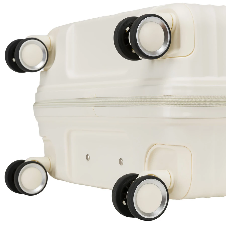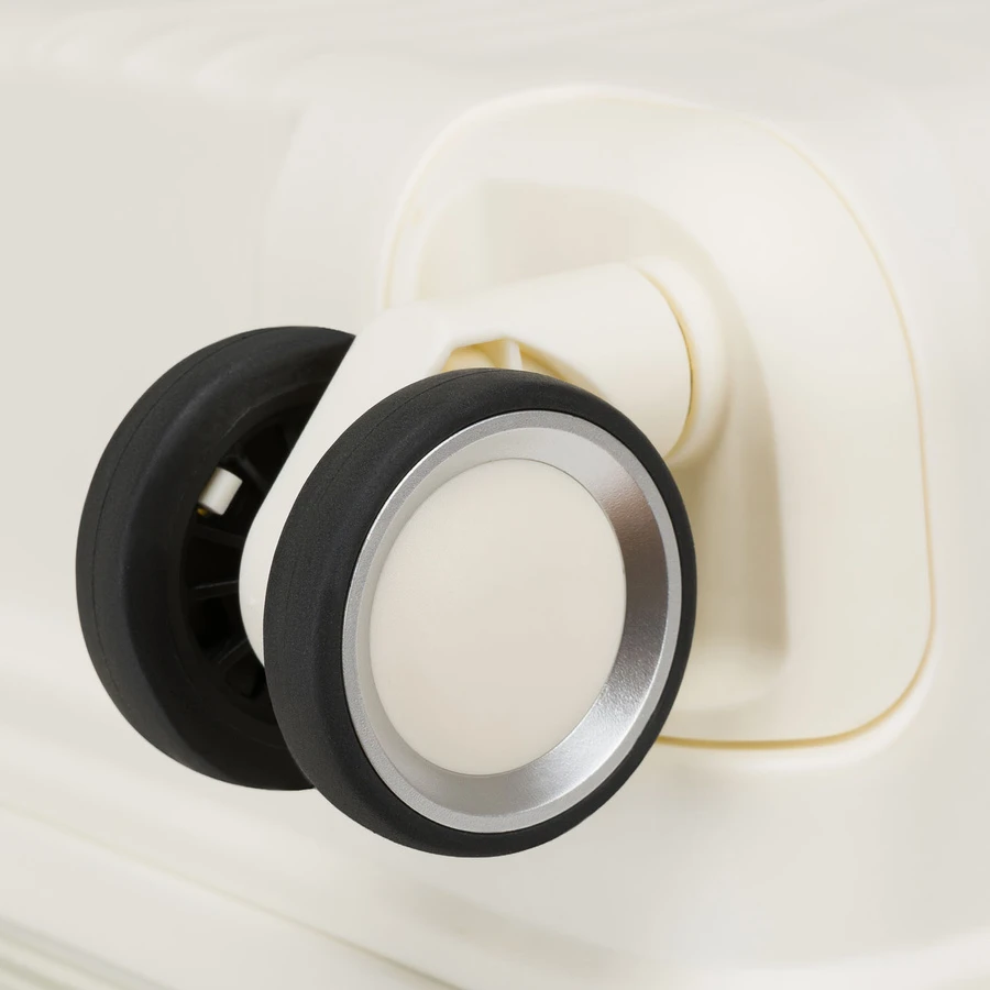 Walizki wyposażono w cztery obrotowe kółka 360°, które zapewniają płynne i lekkie prowadzenie w każdą stronę.