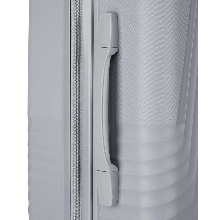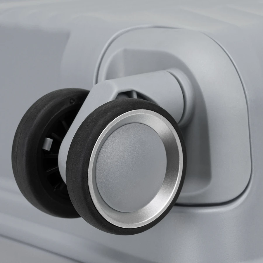 Walizki wyposażono w cztery obrotowe kółka 360°, które zapewniają płynne i ciche prowadzenie po każdej nawierzchni. Teleskopowy uchwyt z regulacją wysokości pozwala dopasować długość rączki do wzrostu, co zwiększa komfort użytkowania. Dodatkowy uchwyt górny umożliwia wygodne przenoszenie bagażu po schodach lub z bagażnika.