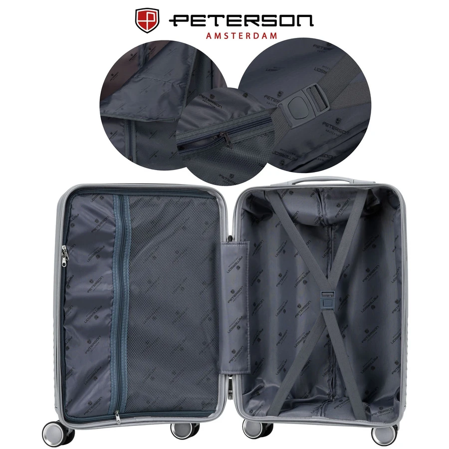 Elegancki zestaw walizek Peterson to inwestycja w komfort, styl i bezpieczeństwo Twoich podróży. Niezależnie od kierunku – z tym zestawem zawsze podróżujesz z klasą.