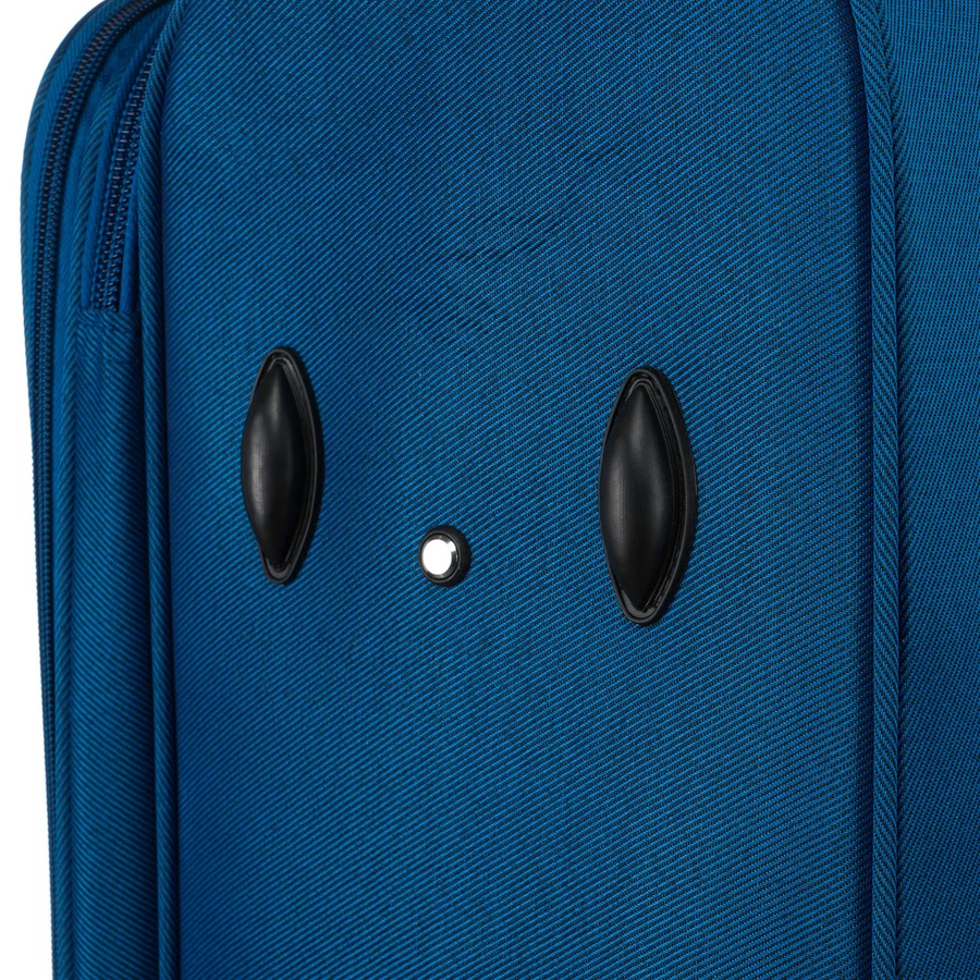 - Prócz wysuwanego uchwytu walizki posiadają także dwa uchwyty na dłoń — górny i boczny.