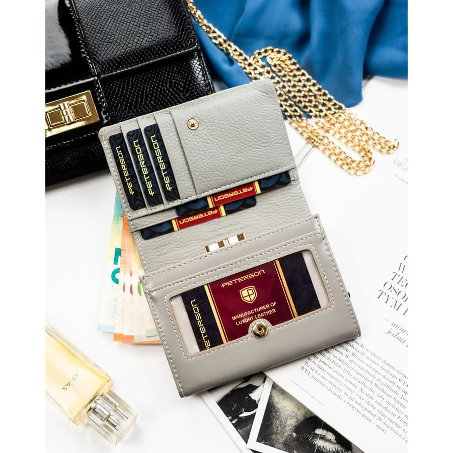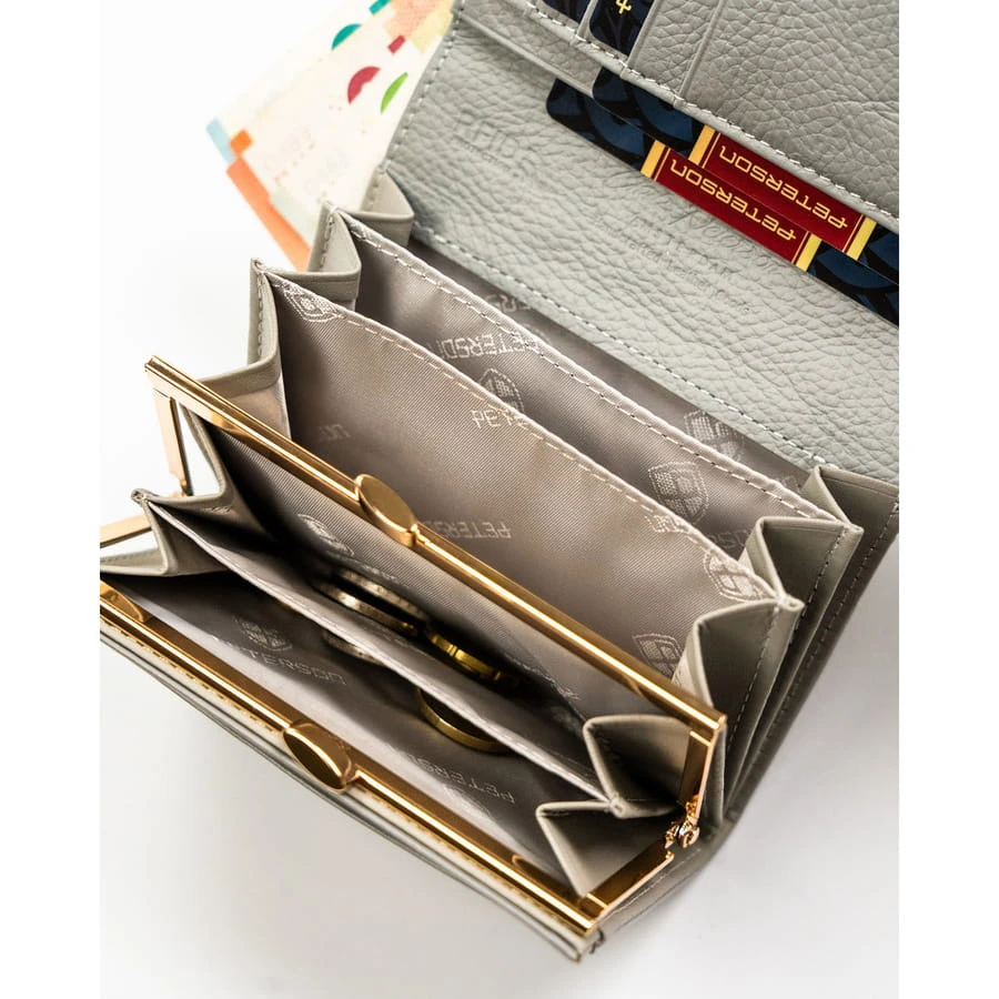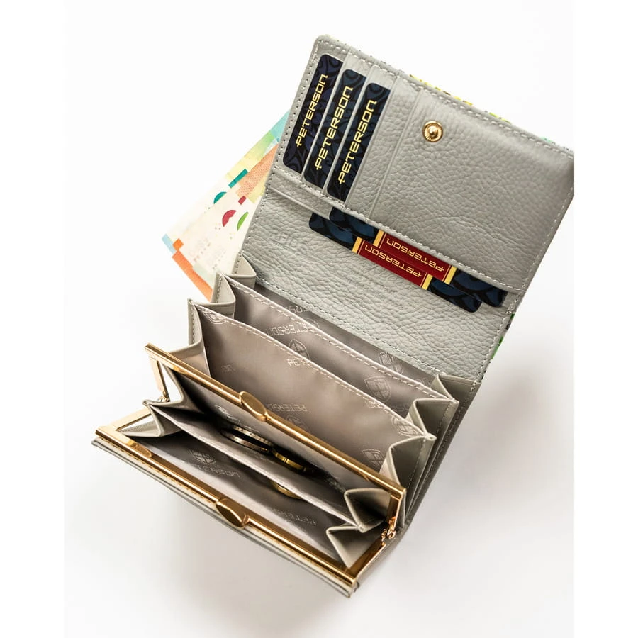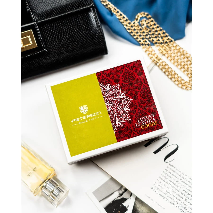 Zielony portfel damski ze skóry naturalnej z systemem RFID ozdobiony kwiatowym wzorem - Peterson