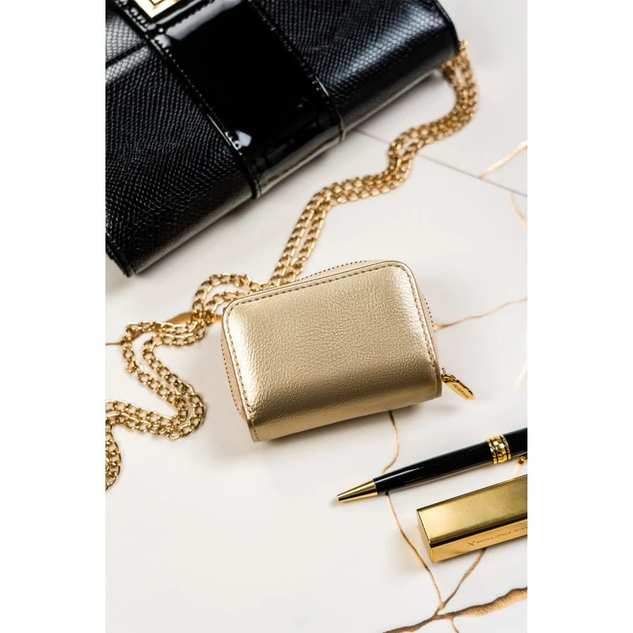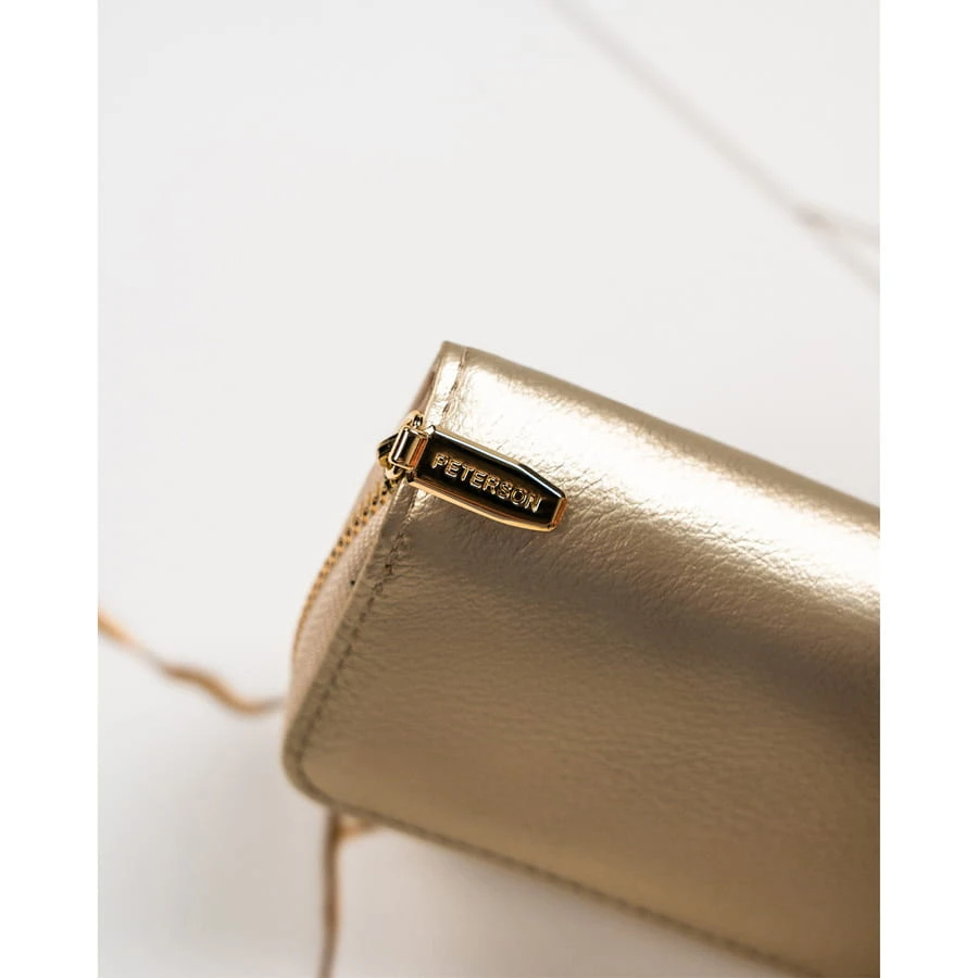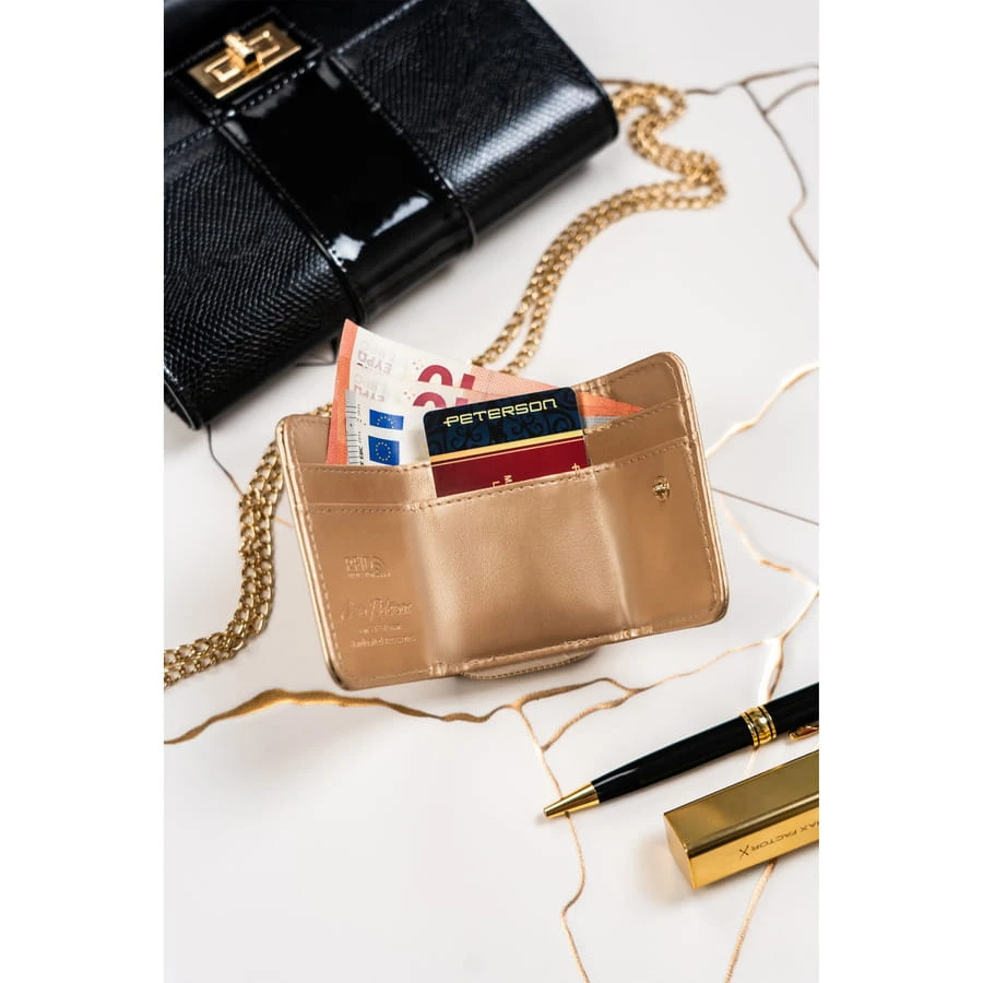 Złoty damski portfel RFID z zatrzaskiem - Peterson