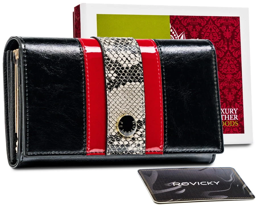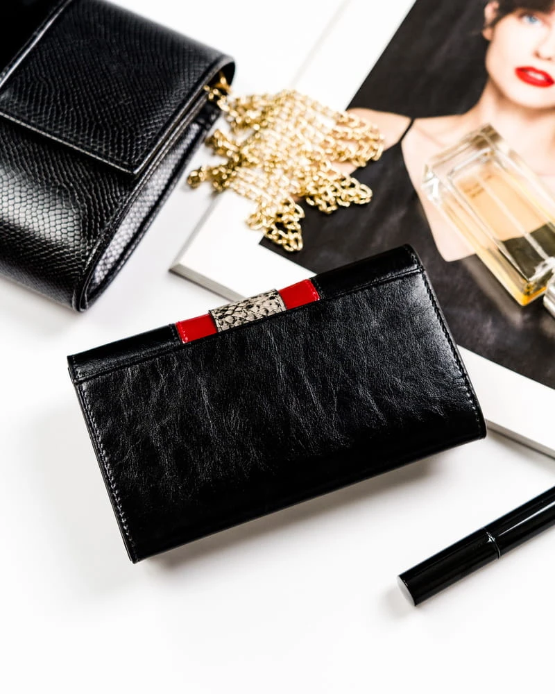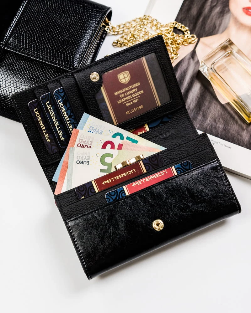 Skórzany portfel damski z motywem wężowej skóry — Peterson