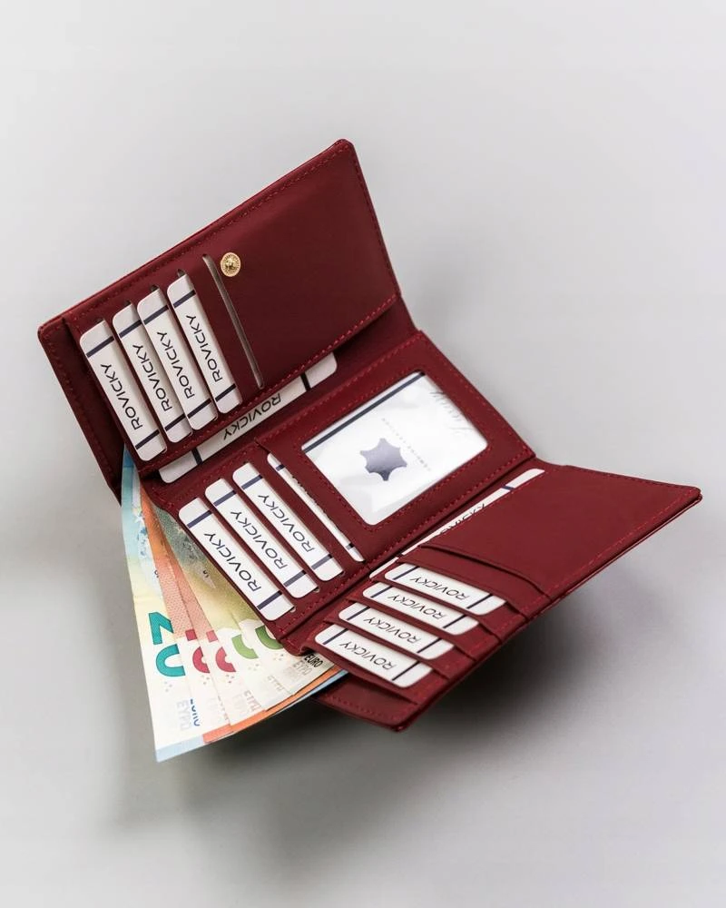 - Bardzo pojemny | Portfel posiada dużo praktycznych przegródek i kieszonek, dzięki czemu pomieści wszystkie karty i dokumenty, także te w większym formacie jak dowód rejestracyjny;