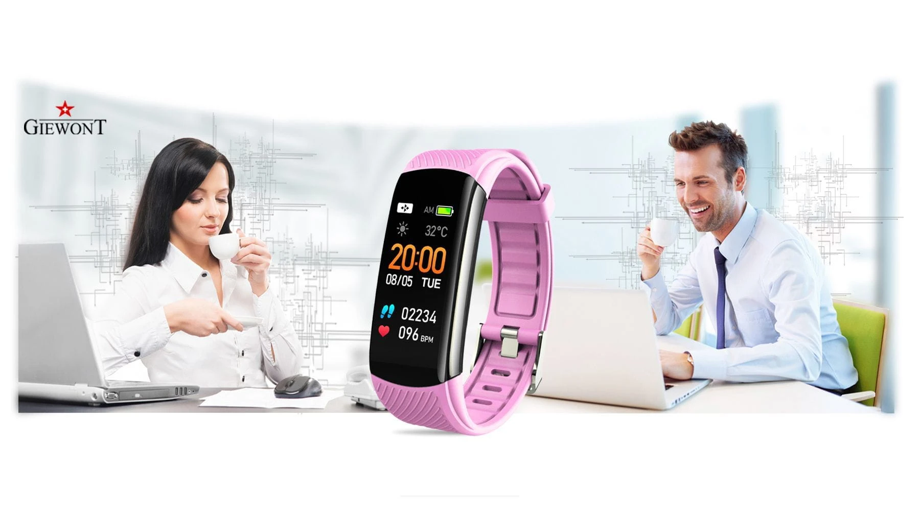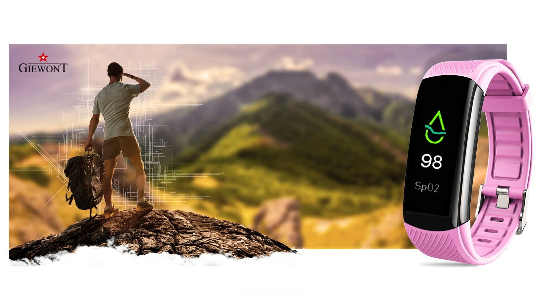 Smartband Giewont Fit&GO Duo GW200 – opaska sportowa, tętno, IP67, Bluetooth, czarny + różowy pasek – zegarek damski Giewont granatowy | niua.pl