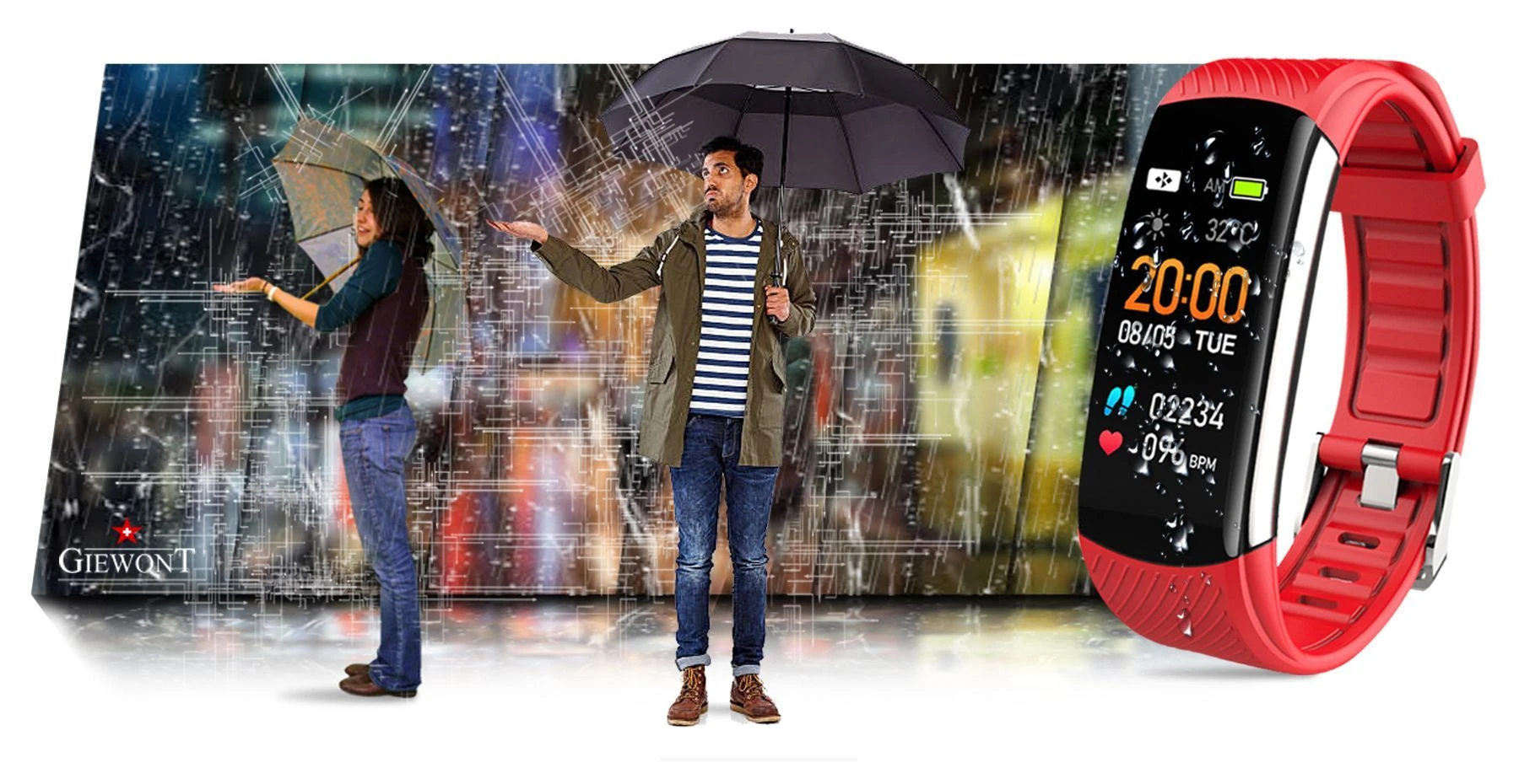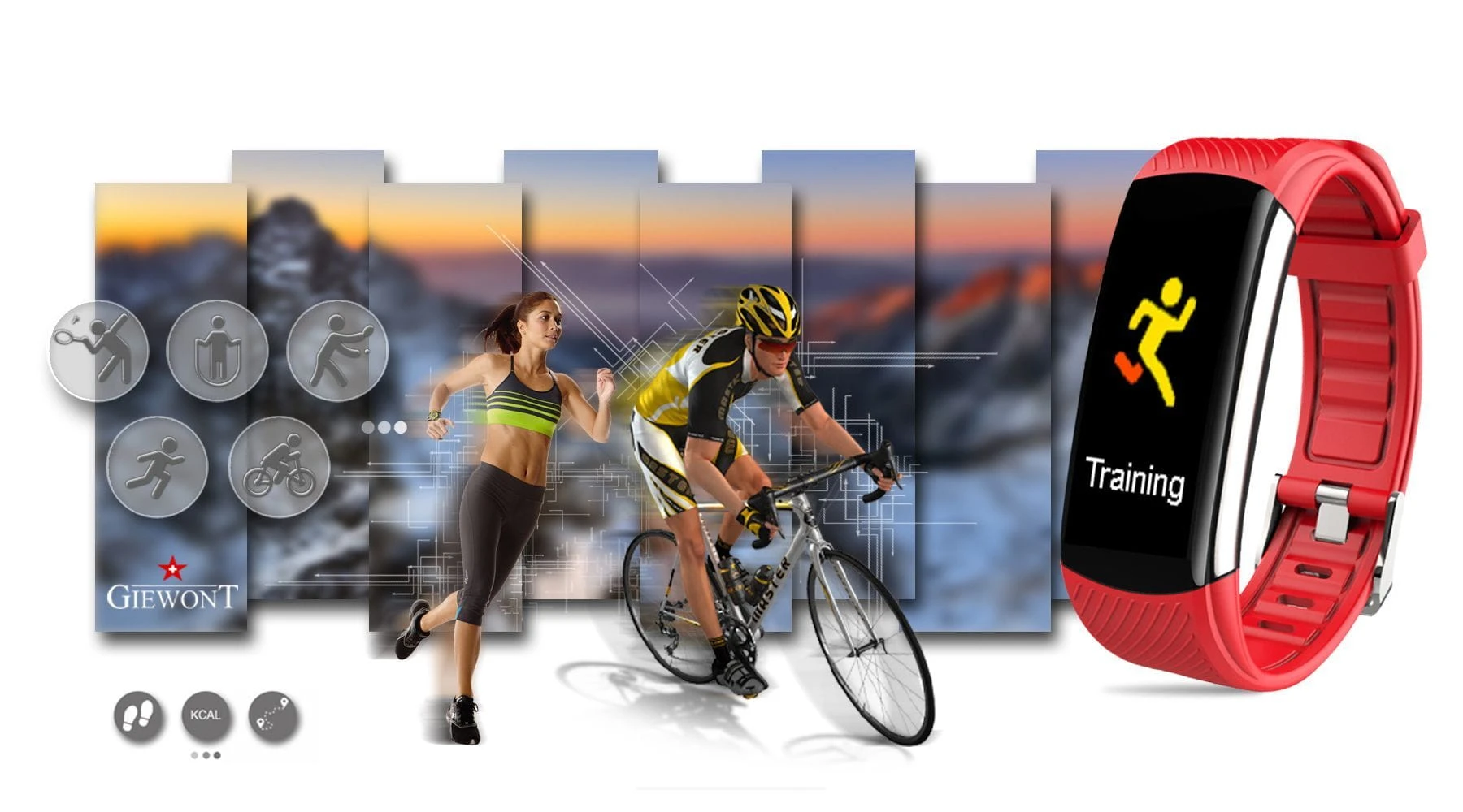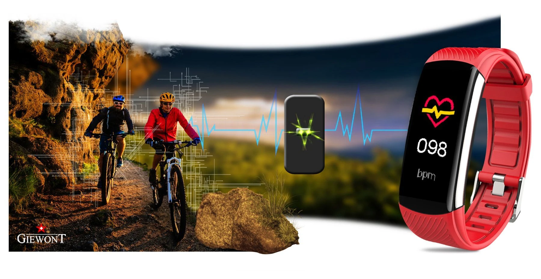 Smartband Giewont Fit&GO Duo GW200 – opaska sportowa, tętno, IP67, Bluetooth, czarny + czerwony pasek – zegarek damski Giewont granatowy | niua.pl